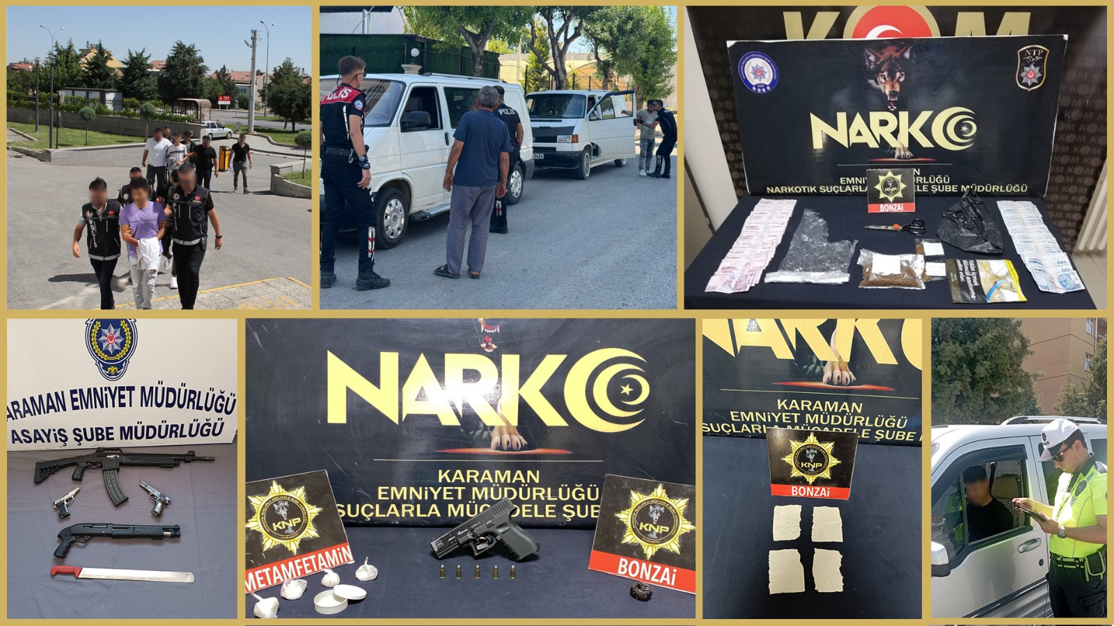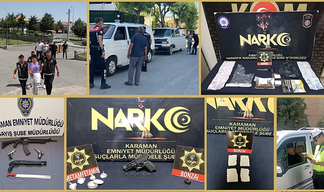 Denetimler esnasında, (3) adet ruhsatsız tabanca, (2) adet ruhsatsız tüfek, (1) adet kesici-delici alet, (5) adet fişek, (227) g uyuşturucu madde, (4) parça uyuşturucu emdirilmiş kağıt, (22.500) TL para ele geçirilmiştir.