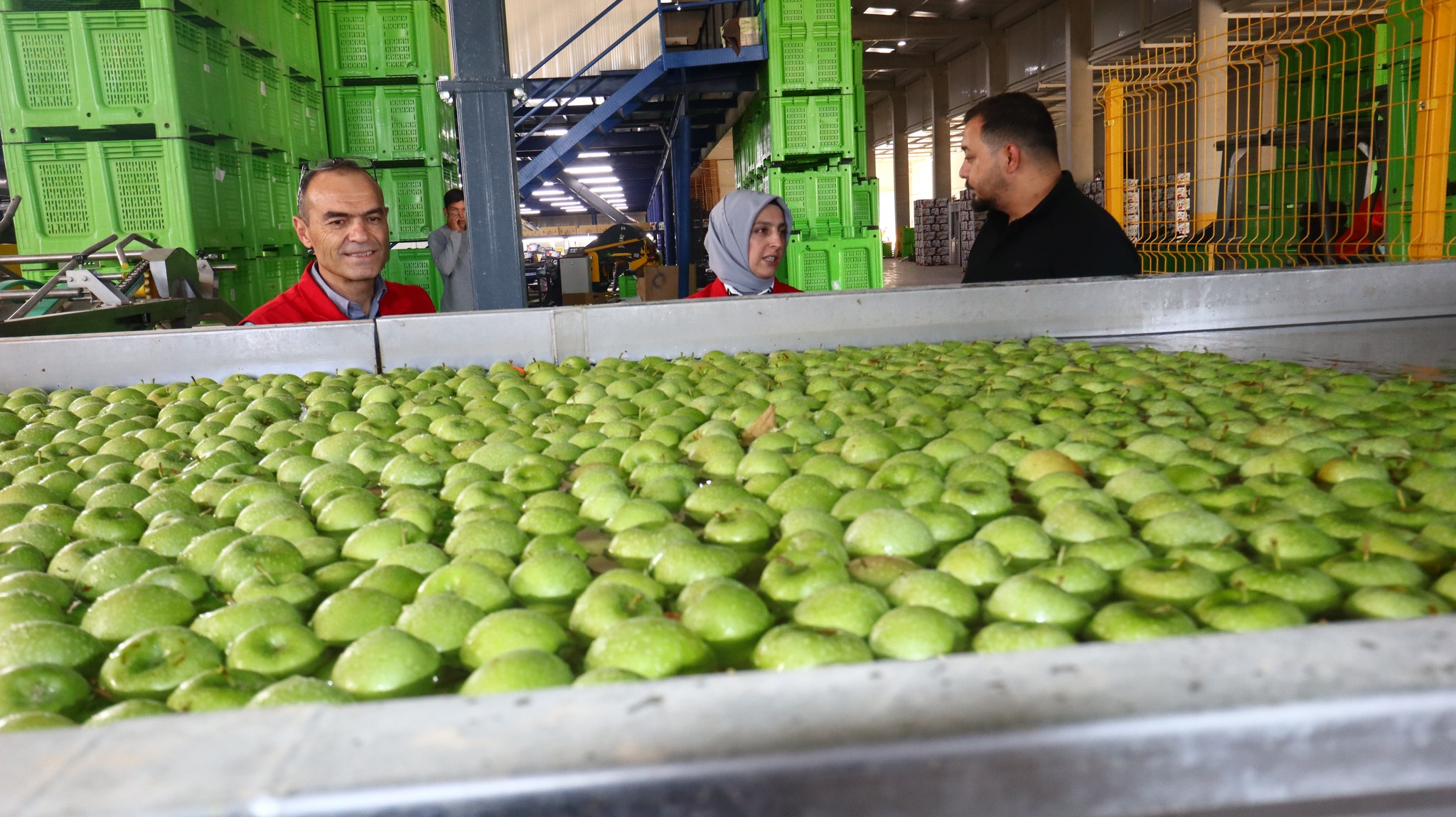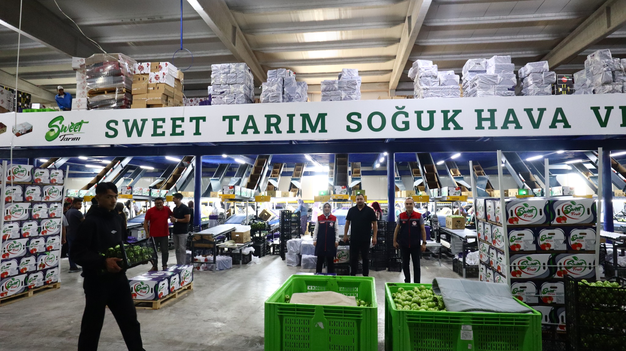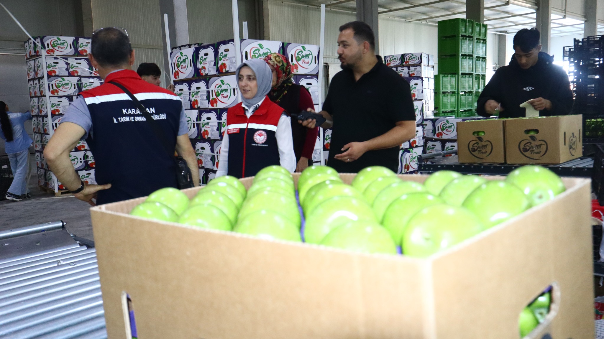 İL MÜDÜRÜ BULUT SOĞUK HAVA DEPOLARINI ZİYARET ETTİ.İl Müdürü Hatice Bulut Bitkisel Üretim Şube Müdürü Ömer Koka ile beraber Organize Sanayi bölgesinde faaliyetlerini sürdüren YILDIZBAŞ ve SWEET soğuk hava depolarını ziyaret etti.YILDIZBAŞ SOĞUK HAVA DEPOSU11.000 ton kapasiteye sahip olan soğuk hava deposunda tasnifi yapılan elmalar birçok ülkeye ihracatı yapılmaktadır. Firma Karaman'da elma ihracatının öncü kuruluşlarından biridir. İl Müdürü Bulut; İşletme sahibi Ahmet Yıldızbaş ve ekibinden elmanın bahçeden sofraya kadar olan sürecinde yapılan iş ve işlemler hakkında bilgi aldı. Ayrıca Türkiye'nin elma pazarında dünyada ki yerinden bahseden firma yetkilileri ihracatımızın nasıl artırılabileceği konularında İl Müdürümüz ile fikir alış verişinde bulundu.SWEET SOĞUK HAVA DEPOSU10.000 Ton kapasiteye sahip olan işletmenin en önemli özelliği ilk YERLİ YAPAY ZEKAYA sahip elma boylama ve tasnifleme makinesine sahip olmasıdır. İl Müdürü Bulut; İşletme Müdürü Enes BOZKIR Yapay Zeka kullanılarak yapılan tasnifleme ve ihracat konusunda bilgi aldı.İl Müdürü Bulut yapmış olduğu açıklamada “İlimizde üretimde önemli bir yere sahip olan elmanın hasadı devam ediyor. Ziyaretini yapmış olduğumuz soğuk hava depolarından Dünyanın birçok ülkesine ihracatı yapılmaktadır. Elmanın üretimden tüketime kadar geçen sürecin en önemi safhalarından birini soğuk hava depoları oluşturmaktadır. Burada oluşabilecek aksaklıklar hem elma ihracatında azalmaya hem de ekonomik açıdan ihracatımızda düşüşlere sebep olacaktır. Bu süreçte elma üreticilerimize soğuk hava deposu işletmelerimize bereketli bir sezon diliyorum” dedi