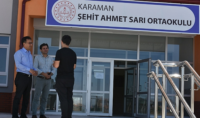 Okulun sınıflarını, konferans salonunu ve idari birimlerini inceleyen İl Müdürü Çalışkan, Karaman’da Şehit Ahmet Sarı Ortaokulu ile okullarda hayata geçecek olan yeni bir uygulamaya ilişkin açıklamalarda bulundu.