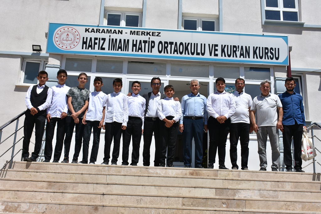 İl Millî Eğitim Müdürü Mehmet Çalışkan, İl Millî Eğitim Müdür Yardımcısı Abdurrahman Kurt ile birlikte Karaman Hafız İmam Hatip Ortaokulunda hafızlıklarını başarıyla tamamlayıp Diyanet İşleri Başkanlığından icazetlerini alan ve bu yıl yeni hafızlığa başlayan öğrencilere ziyaret gerçekleştirerek mutluluklarına ortak oldu.