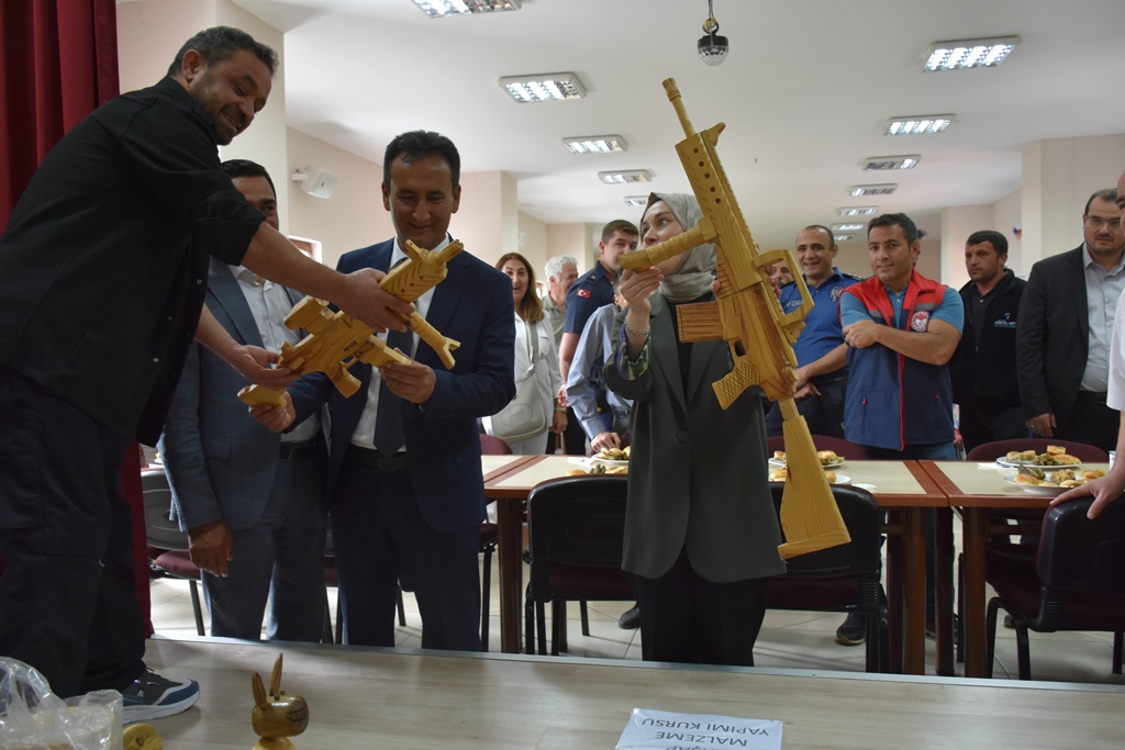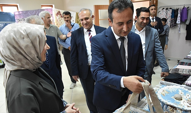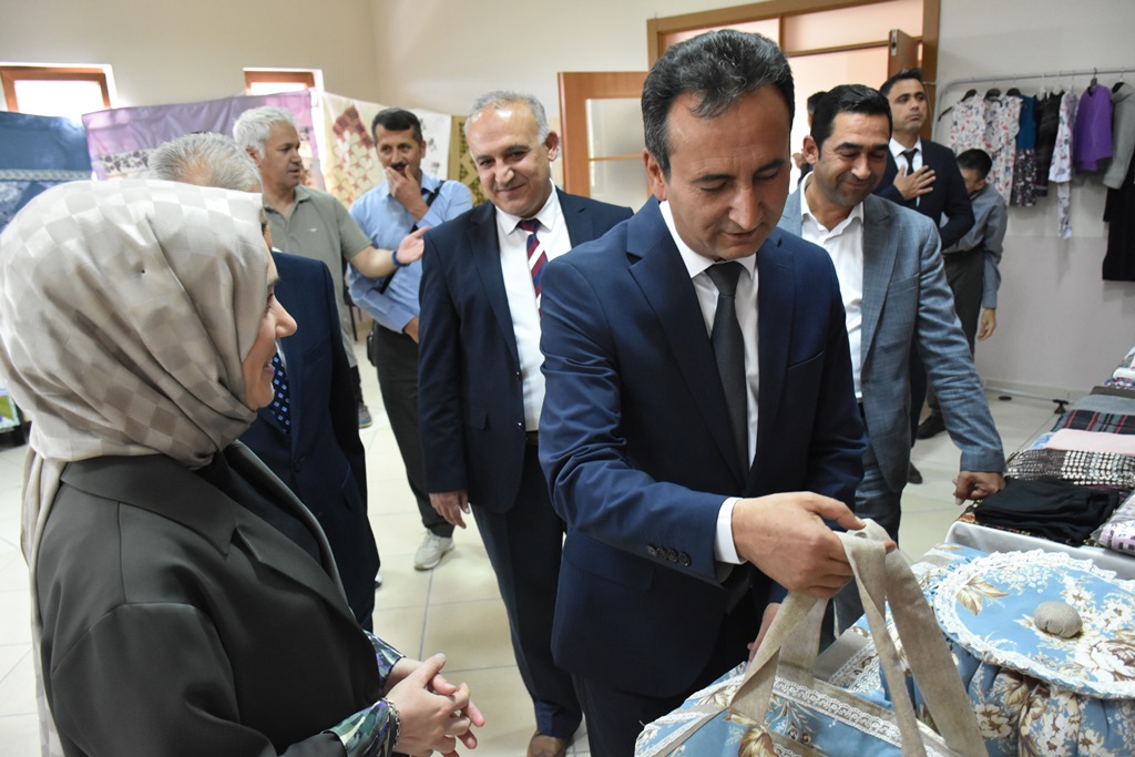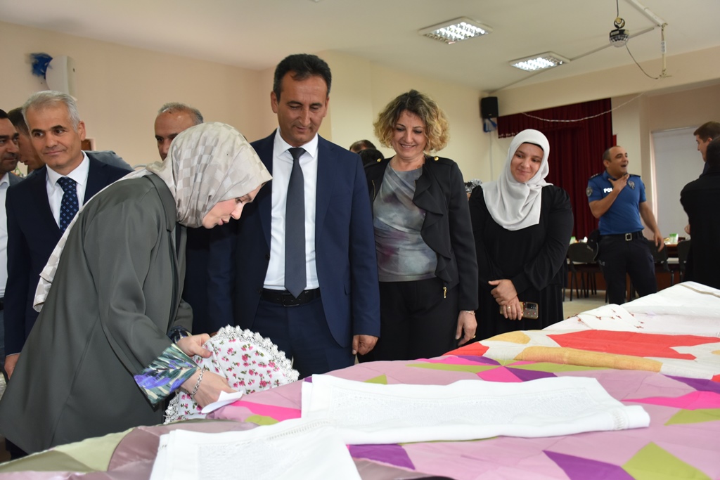 Ziyaretin devamında Hayat Boyu Öğrenme Haftası etkinlikleri kapsamında Başyayla Halk Eğitimi Merkezi kursiyerlerinin el emeği göz nuru eserlerinin yer aldığı sergiyi ziyaret eden Başyayla Kaymakamı Neslihan Çakır ve İl Müdürü Mehmet Çalışkan, sergide kursiyerlerle ve öğretmenlerle sohbet ederek sergilenen çalışmalar hakkında bilgi aldı. Sergide; geleneksel motiflerle çağdaş dokunuşların buluştuğu el sanatları ziyaretçilerin beğenisine sunuldu.