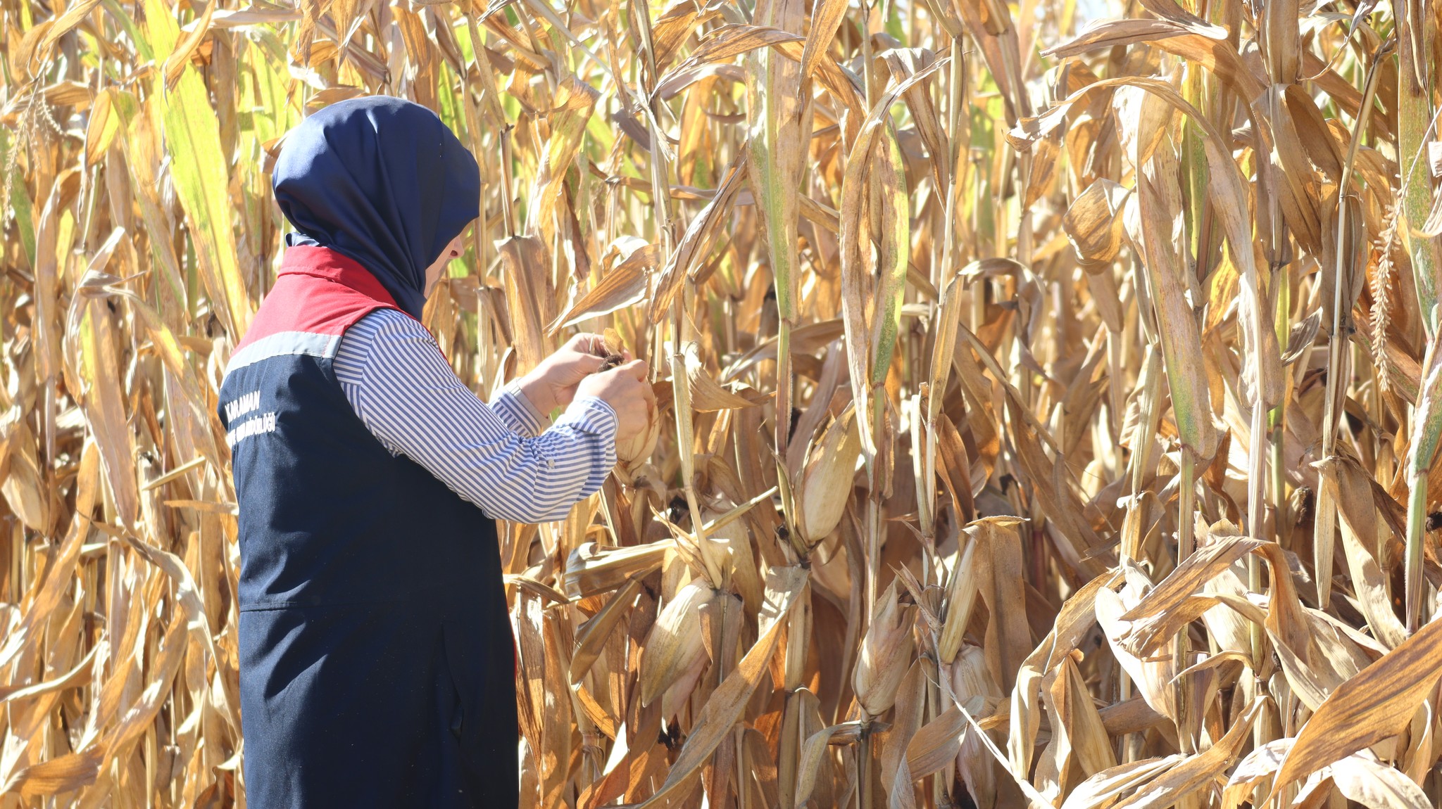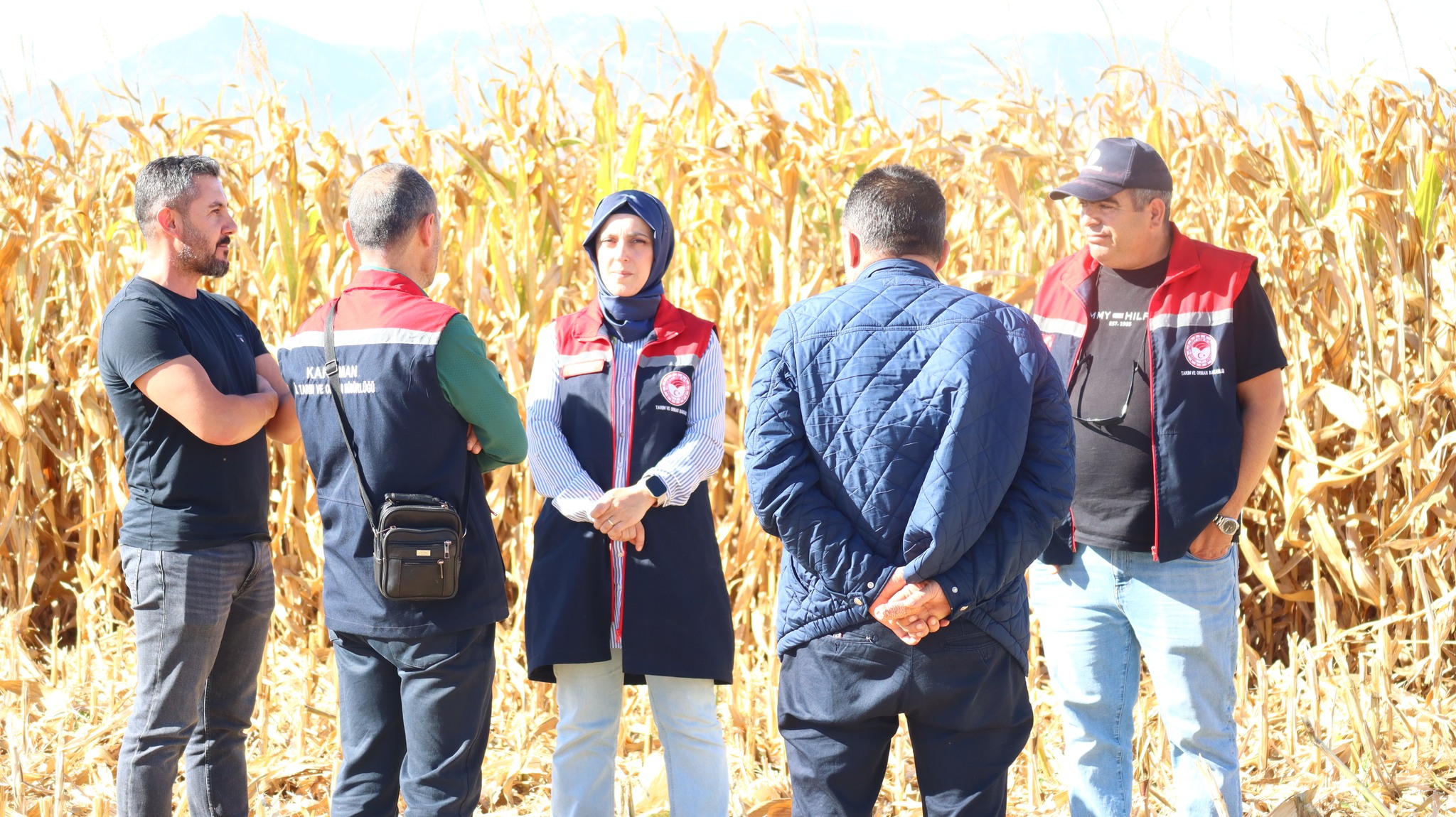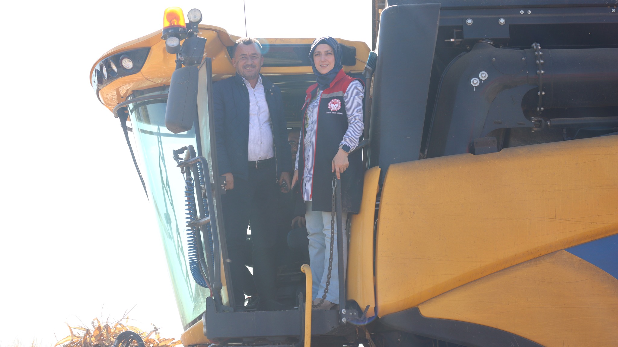 İl Müdürü Hatice Bulut Bitkisel Üretim Şube Müdürü Ömer Koka ile beraber Mısır hasadı yapılan alanlarda incelemelerde bulundu.