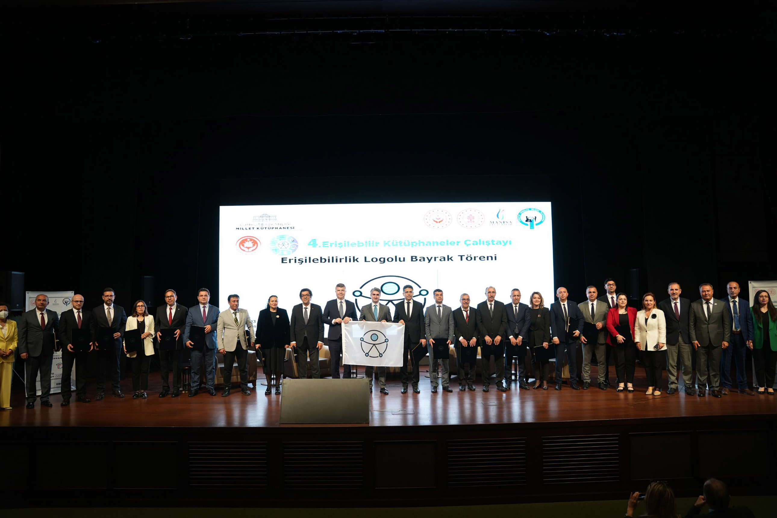 Bilgiye erişimin herkes için eşit şartlarda sağlanması amacıyla düzenlenen çalıştayda, erişilebilirlik bayrakları sahiplerini buldu. Program kapsamında gerçekleştirilen “Erişilebilirlik Logo Bayrağı Takdim Töreni”nde KMÜ Kütüphanesi, erişilebilir hizmetleri dolayısıyla ödüle layık görülerek büyük bir başarıya imza attı. Bayrağı, Rektör Prof. Dr. Mehmet Gavgalı, Bakan Yardımcısı Zafer Tarıkdaroğlu’nun elinden aldı.