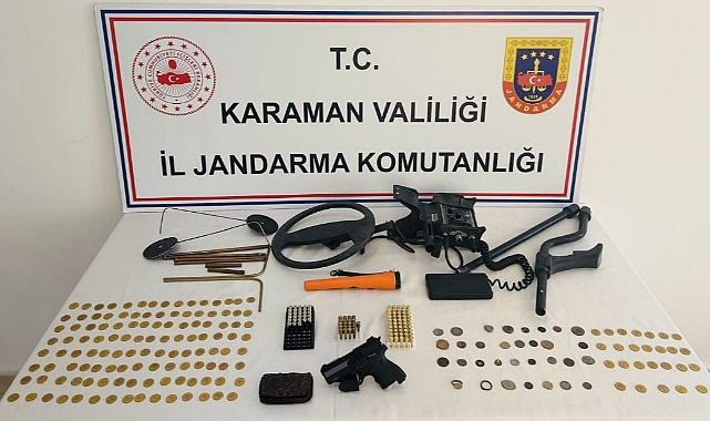Karaman İl Jandarma Komutanlığı tarafından 19 Temmuz 2024 tarihinde Kaçakçılıkla Mücadele faaliyetleri kapsamında Merkez ilçe sorumluluk bölgesinde bulunan şüpheli (B.T.) isimli şahsın evinde tarihi eser bulundurduğu ve satmak için müşteri aradığı bilgisi edinilmesi üzerine evinde yapılan arama sonucunda;