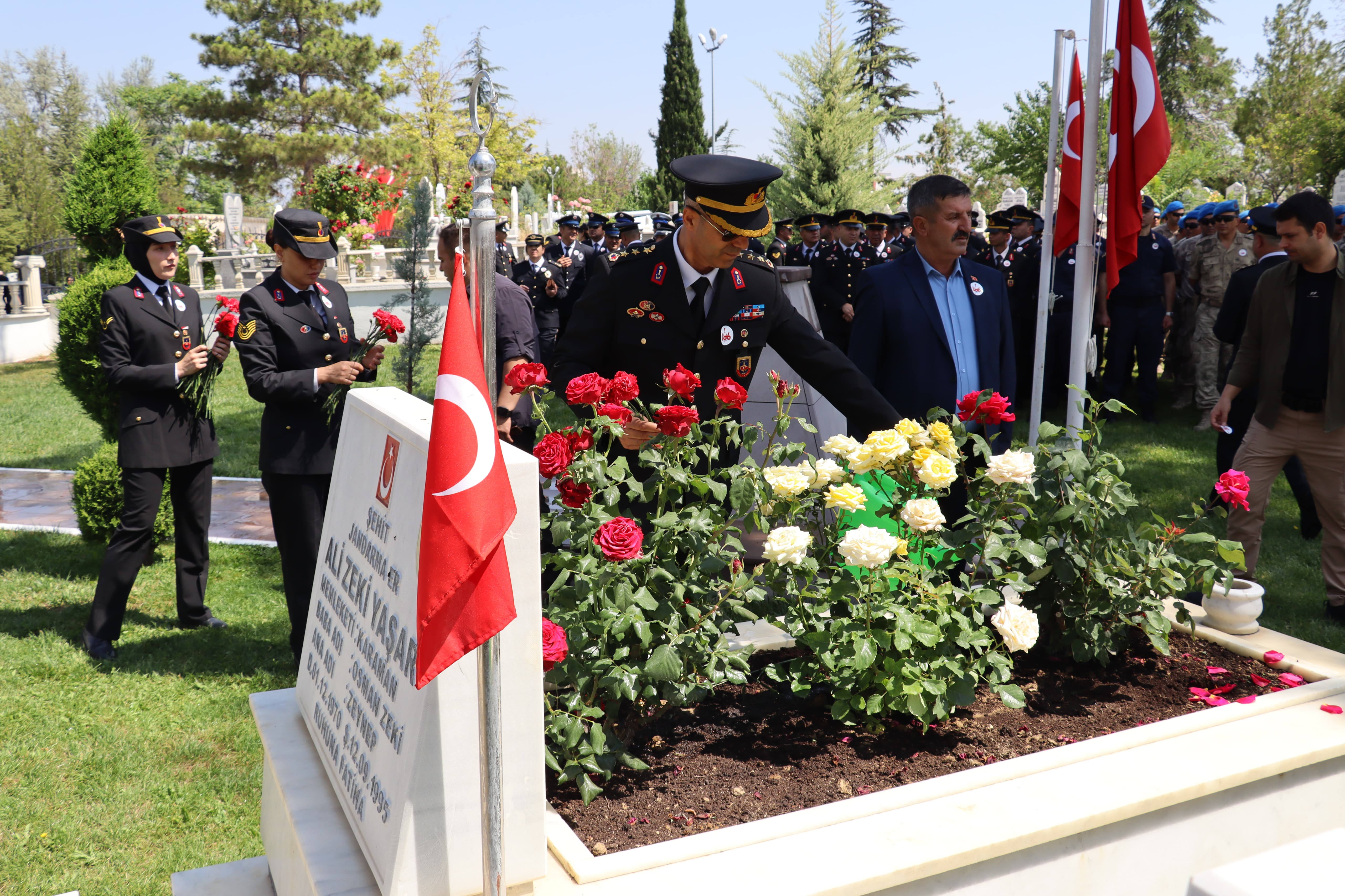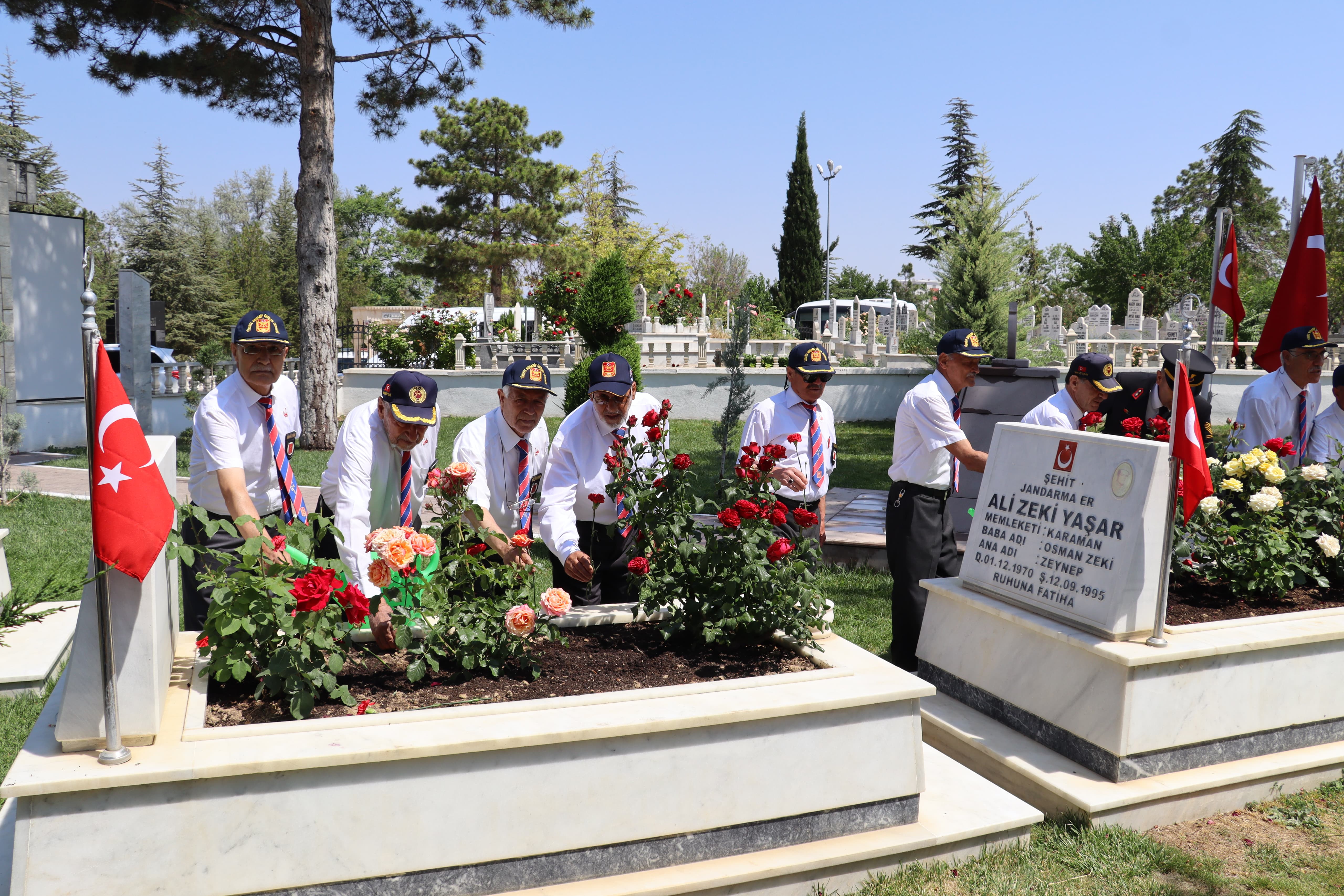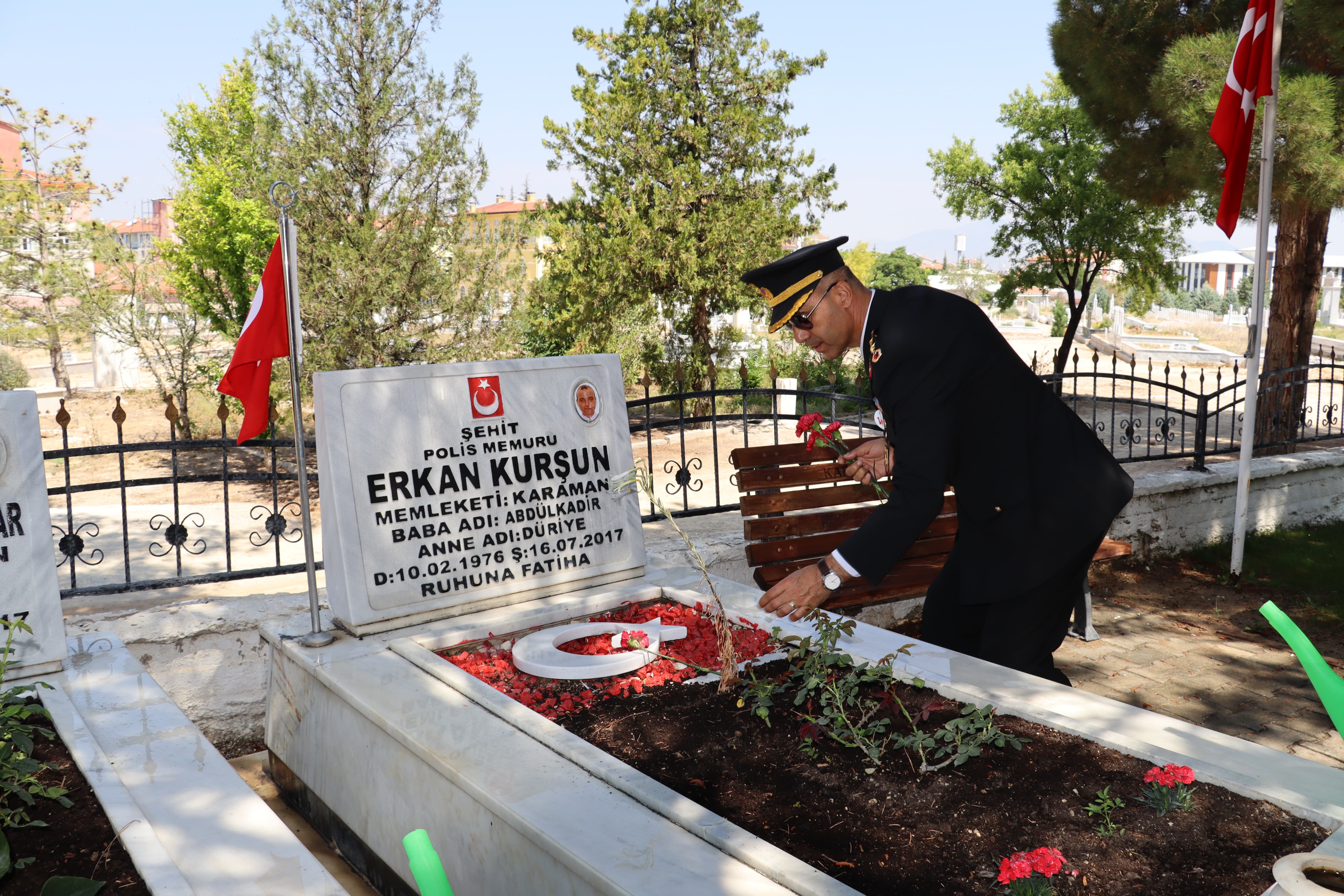 Çelenk sunma töreninin ardından Karaman Garnizon Şehitliği ve Polis Şehitliği ziyaret edildi. Protokol üyeleri ve güvenlik personelinin katıldığı ziyarette, Kuran-ı Kerim tilaveti okundu ve aziz şehitlerimizin kabirlerine karanfil bırakıldı.