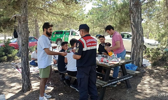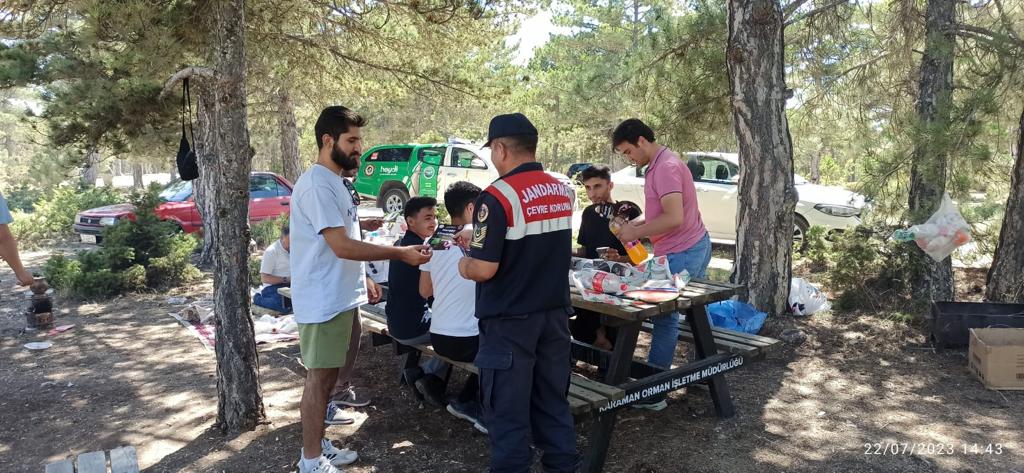 22 Temmuz 2023 günü Karaman İl Jandarma Komutanlığınca, Karaman ili sınırlarında yer alan ormanlık alanlarda ve Gökçe Çamlığı piknik sahasinda, yaz aylarının başlamasıyla orman yangınlarında artış riskinin ortadan kaldırılmasına yönelik önlemler kapsamında İl Jandarma Komutanlığı Çevre Doğa ve Hayvanları Koruma Tim Komutanlığınca “ Jandarma Her Yerde” Mottosuyla*, kontrol ve özellikle cam atıklar ile sigara izmaritlerinin * orman yangın riskini artıran en büyük etkenler olduğuna dair bilgilendirme faaliyeti icra edilmiş olup, vatandaşlara gerekli denetim ve kontrollerin aralıksız sürdürüleceğinin bilgisi verilmiş ve orman yangınlarına karşı dikkat edilmesi gereken hususlarla ilgili *Her Şey Elimizde mottosuyla el broşürleri dağıtılmıştır.