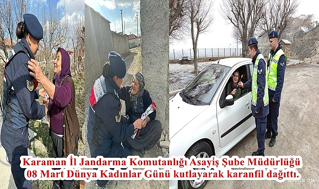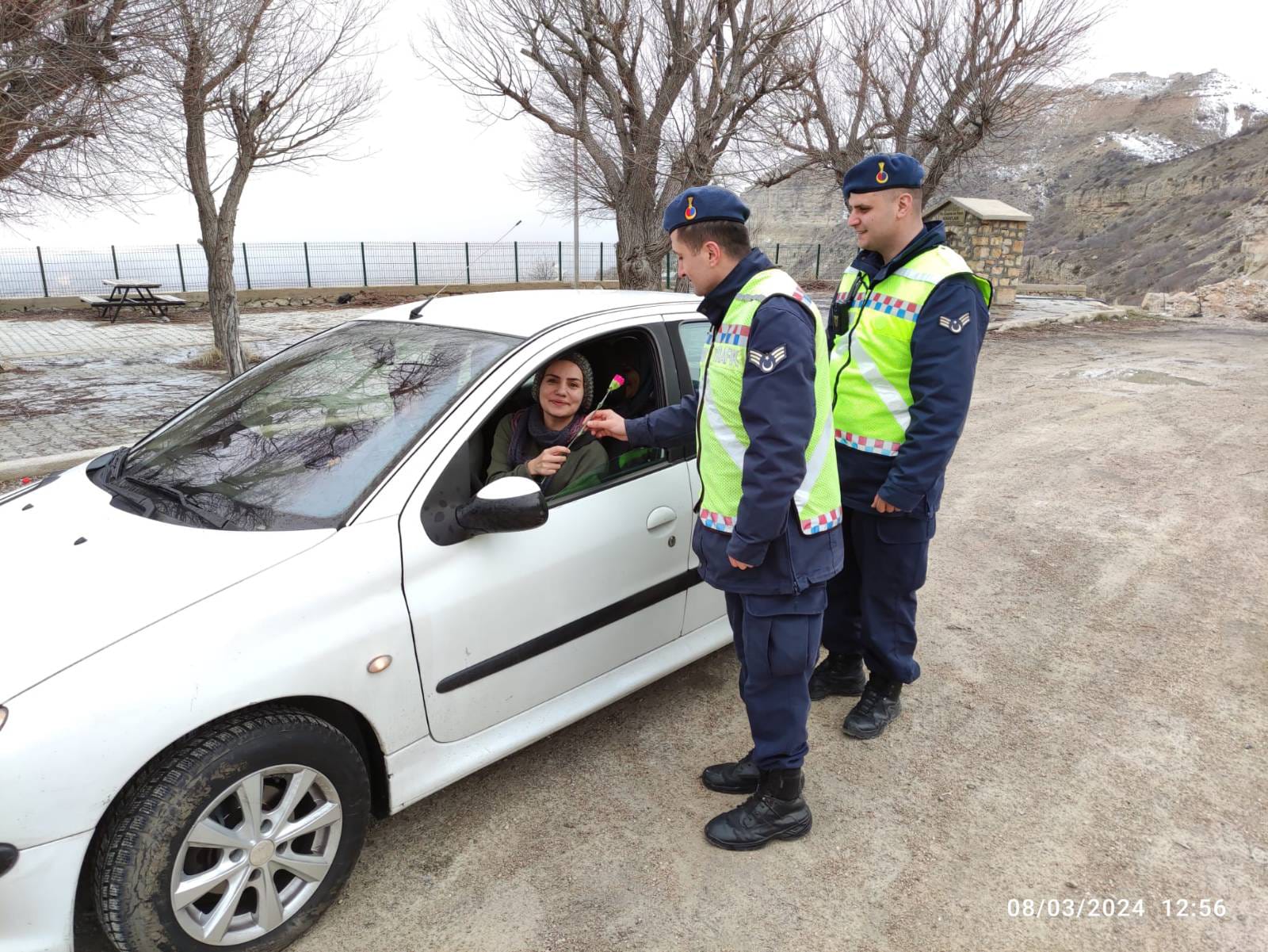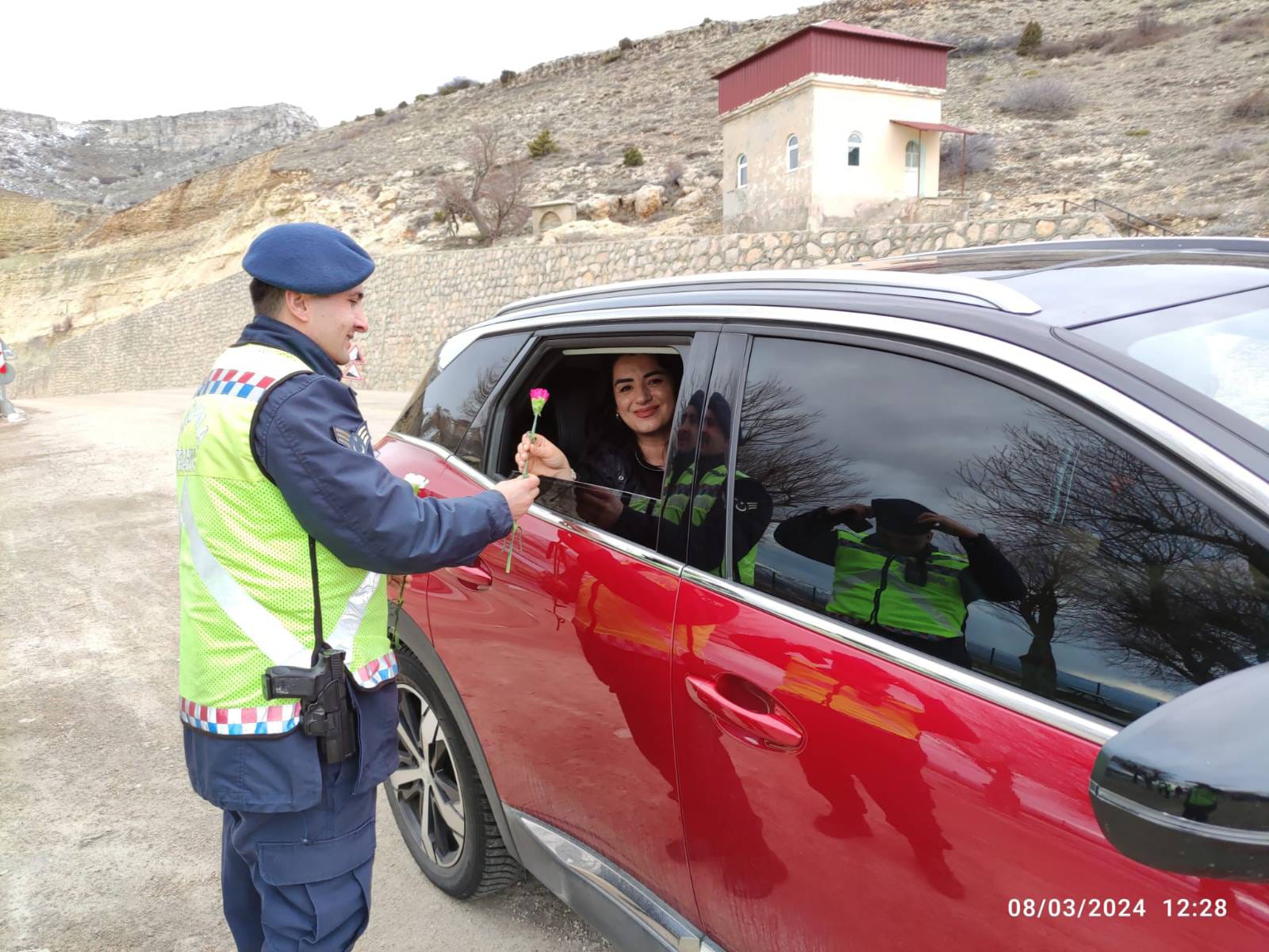 Karaman İl Jandarma Komutanlığı Asayiş Şube Müdürlüğü, 08 Mart Dünya Kadınlar Günü kutlayarak karanfil dağıttı.