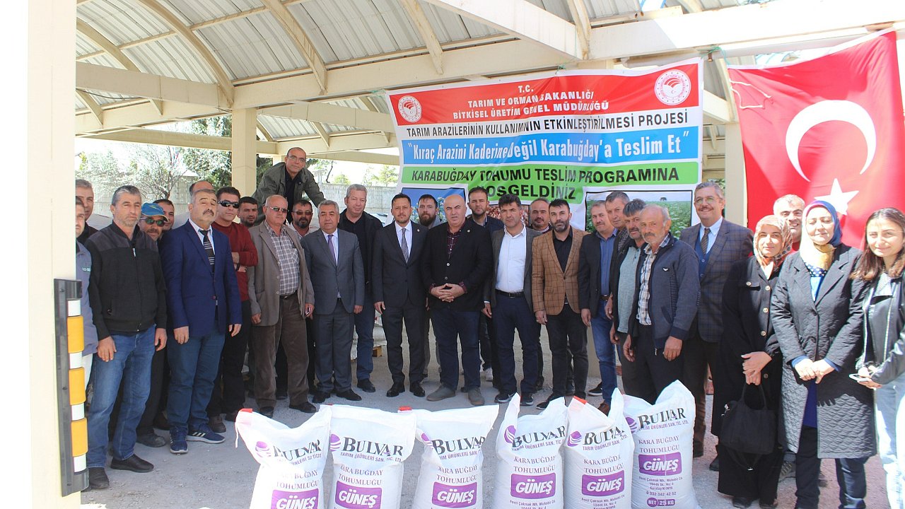 Bitkisel Üretim Genel Müdürlüğü tarafından finanse edilen Tarım Arazilerinin Kullanımın Etkinleştirilmesi (TAKE) projeleri bünyesinde ilimizde yürütülen “Kıraç Arazini Kaderine Değil Karabuğdaya Teslim Et” projesi kapsamında karabuğday tohum teslimi töreni düzenlendi.