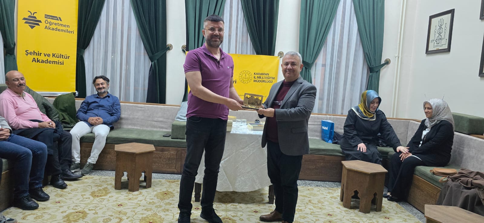 Program sonunda öğretmenler, konuşmacılara sorular yönelterek görüş alışverişinde bulundu. Söyleşi, Karaman Öğretmen Akademileri İl Koordinatörü Hasan Erkan'ın Doç. Dr. Mehmet Ali Kapar 'a hediye takdim etmesi ve günün anısına çekilen fotoğraflarla sona erdi.