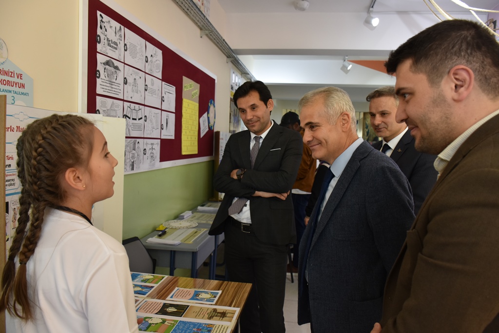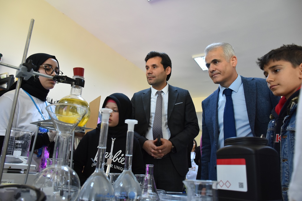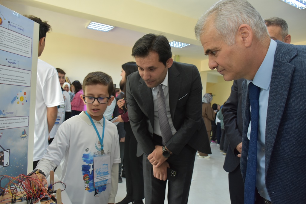 İl Millî Eğitim Müdür Yardımcıları İsmail Kılınç ve Abdurrahman Kurt, öğrencilerle yakından ilgilenerek her bir projeyi dikkatle inceleyip ve proje sahiplerinden çalışmalarının süreçlerine dair bilgi aldılar.