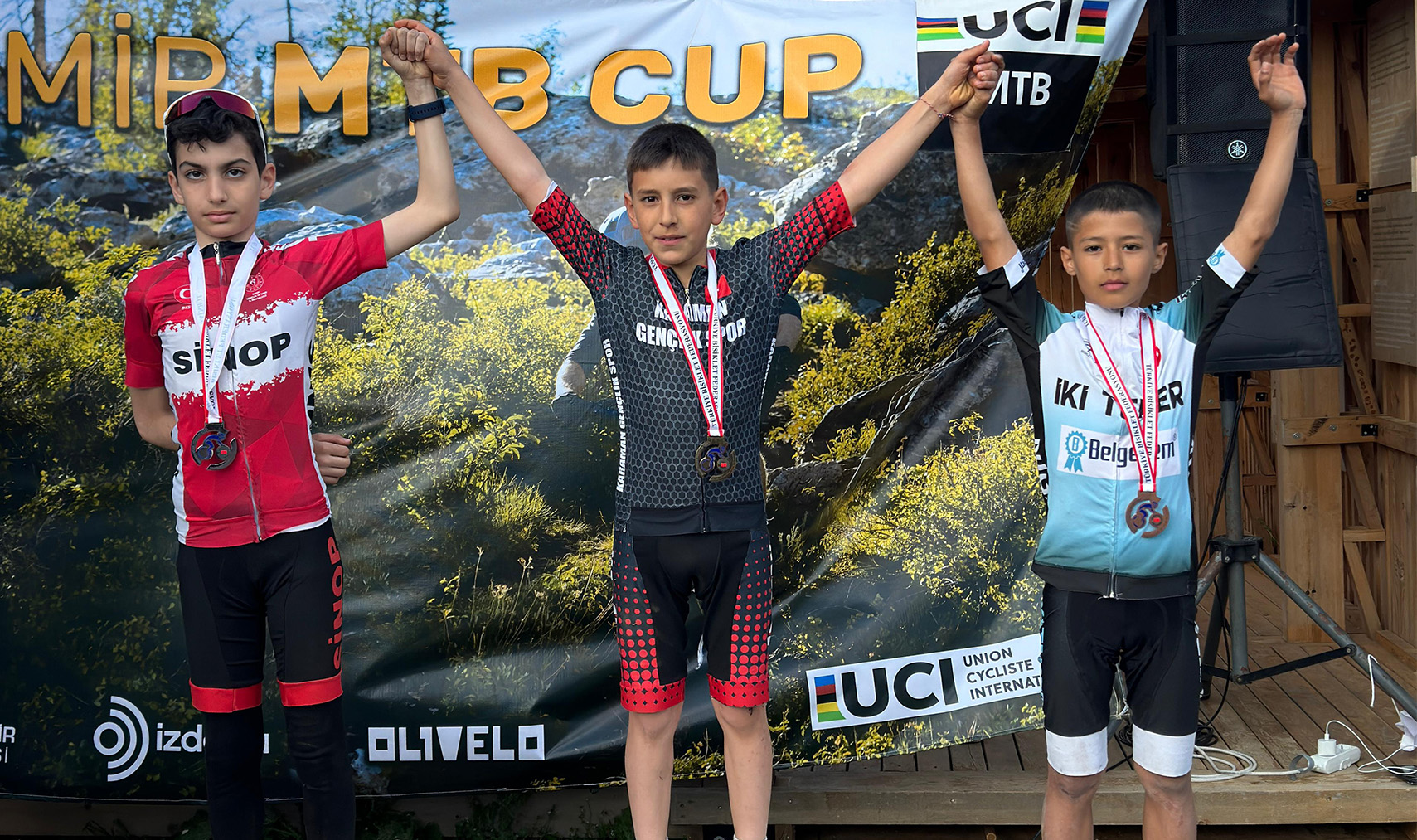 Karaman bisiklet takımı, 2024 sezonunun başlamasıyla birlikte başarılarına yenilerini eklemeye devam ediyor. Katıldıkları her yarışta madalya kürsüsünde yer almayı başaran Karaman ekibi bu kez de İzmir’de düzenlenen Ulusal Dağ Bisikleti yarışlarında kürsüde yer almasını bildi. Bisiklet antrenörleri Hasan Duman ve Emre Öner eşliğinde 3 kategoride toplam 12 sporcuyla mücadele eden Karaman ekibi, U12 erkekler kategorisinde Atak İzcilik Spor Kulübü sporcusu Eymen Ege Kaya ile altın madalyaya uzanırken, Gençlik ve Spor İl Müdürlüğü Spor Kulübü sporcusu Veli Sarı ile gümüş madalyaya uzandı. Yine Karaman ekibinden Bedirhan Özbek’te yarışları beşinci olarak tamamladı.