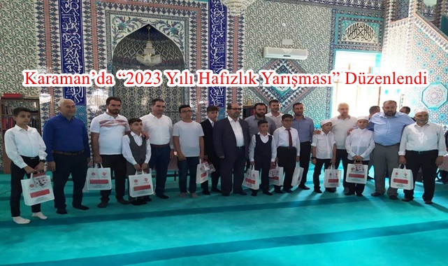 Karaman’da “2023 Yılı Hafızlık Yarışması” DüzenlendiDiyanet İşleri Başkanlığı koordinesinde Kur’an Kursu öğrencilerine yönelik düzenlenen "2023 Yılı Hafızlık Yarışması"nda bölge heyecanı yaşanıyor.Diyanet İşleri Başkanlığınca hafızlık öğrencilerinin motivasyon ve özgüvenlerini arttırmak, bilgi ve beceri düzeylerini sınamalarını sağlamak ve birbirleriyle kaynaşma ve tanışma fırsatları sunmak amacıyla çeşitli yarışmalar düzenleniyor.Karaman İl Müftülüğü ev sahipliğinde düzenlenen “2023 Yılı Hafızlık Yarışması” Bölge Finali Karaman İmam-ı Azam Camii'nde gerçekleştirildi.Bölge yarışmasına Adana, Antalya, Hatay, Osmaniye, Kahramanmaraş, Karaman, Isparta, Mersin ve Burdur illerinden yarışmacı 9 öğrenci katıldı.Yarışma sonucunda 1. öğrenci Mersin - Silifke Merkez Kuran Kursu’ndan Ömer Faruk GÖK, 2. öğrenci Karaman Zembilli Ali Efendi Erkek Kuran Kursu’ndan Huzeyfe EKEN ve 3. öğrenci Kahramanmaraş Şehadet Kuran Kursu’ndan Duran Çınarlıdere oldu.Dereceye giren öğrencileri tebrik eden Karaman İl Müftüsü Faruk GÜRBÜZ onlara hediye takdiminde bulundu.