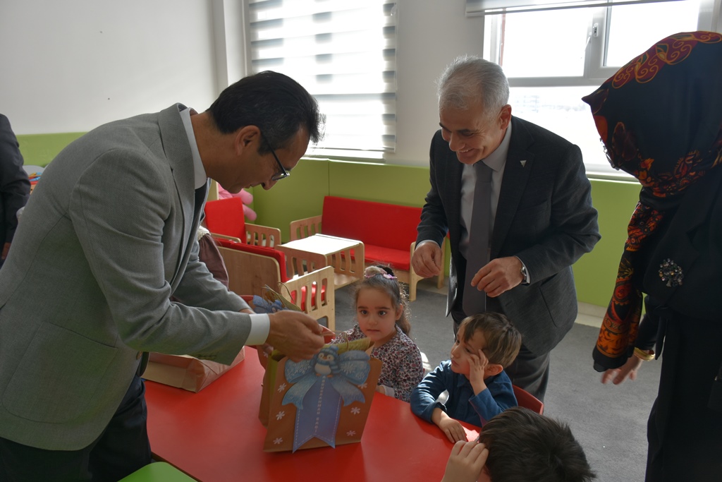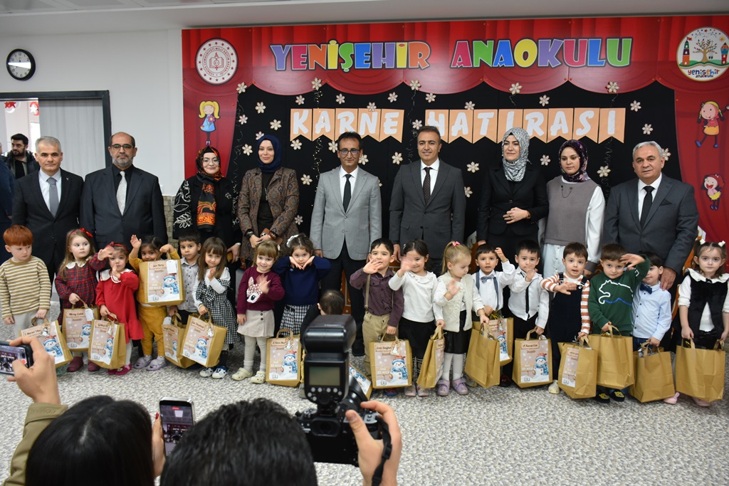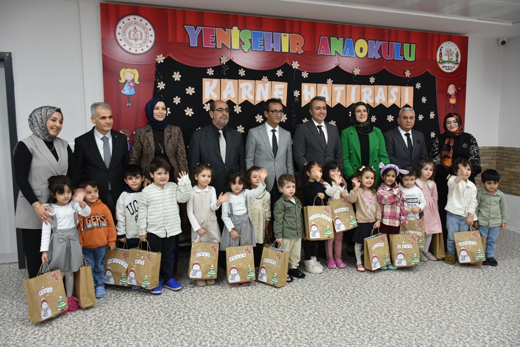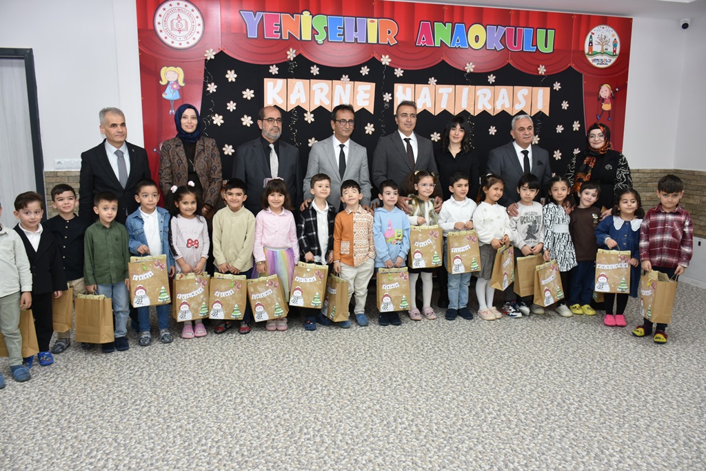 Karaman’da 49 Bin Öğrenci Karne Sevinci YaşadıKaraman’da okul öncesi ile ilk ve orta dereceli okullarda öğrenim gören 49 bin 103 öğrenci, karnelerini alarak iki haftalık yarıyıl tatiline girdi. Karne heyecanına Karaman Valisi Hayrettin Çiçek ile İl Millî Eğitim Müdürü Mehmet Çalışkan da ortak oldu.Karaman’da, okul öncesi eğitim kurumları ile ilk ve orta dereceli okullarda eğitim gören 49 bin 103 öğrenci, karnelerini alarak yarıyıl tatiline girdi. Tüm yurtta olduğu gibi Karaman’da da öğrenciler karne almanın heyecanını yaşadı.Karne dağıtım programı kapsamında Karaman Valisi Hayrettin Çiçek ve İl Millî Eğitim Müdürü Mehmet Çalışkan, Yenişehir Anaokulunu ziyaret etti. Minik öğrenciler karnelerini Vali Hayrettin Çiçek’in elinden aldı.Karne töreninde öğrencilerle bir süre sohbet eden Vali Çiçek, sınıfları tek tek gezerek öğretmenlerle de bir araya geldi. Eğitim-öğretim sürecine verdikleri emeklerden dolayı öğretmenlere teşekkür eden Vali Çiçek, öğrencilere de tatilde bol bol dinlenmeleri ve kitap okumaları tavsiyesinde bulundu.Renkli görüntülere sahne olan programda, öğrencilere karnelerinin yanı sıra çeşitli hediyeler de verildi. Öğrencilerin yaşadığı karne heyecanı ve mutluluğu dikkat çekti.Program, protokol üyelerinin öğrenci ve öğretmenlerle birlikte çektirdiği hatıra fotoğraflarıyla sona erdi.