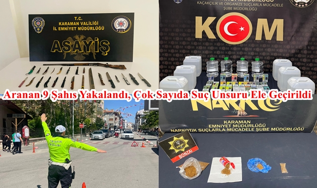 Karaman’da Asayiş Uygulamaları: Aranan 9 Şahıs Yakalandı, Çok Sayıda Suç Unsuru Ele Geçirildi