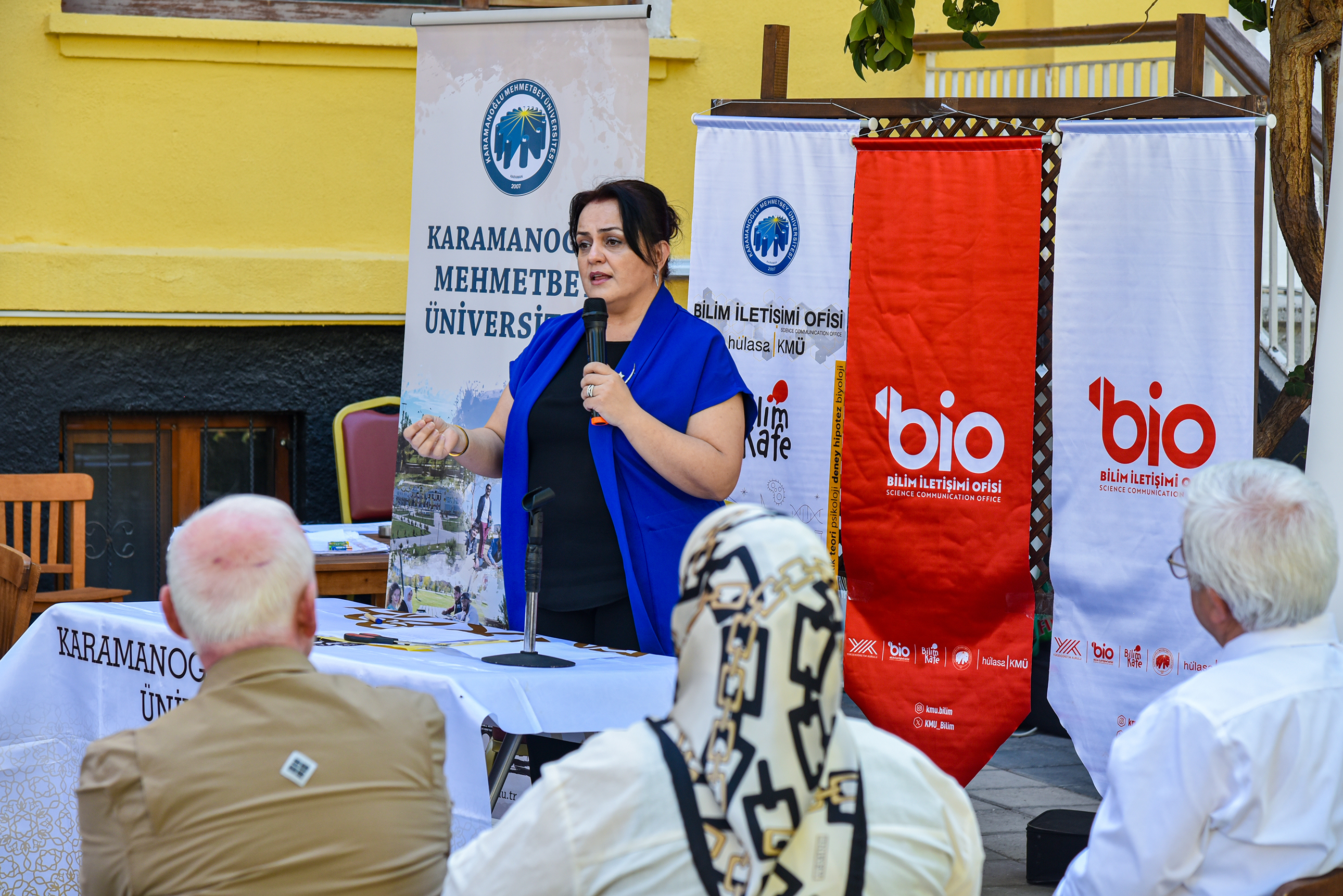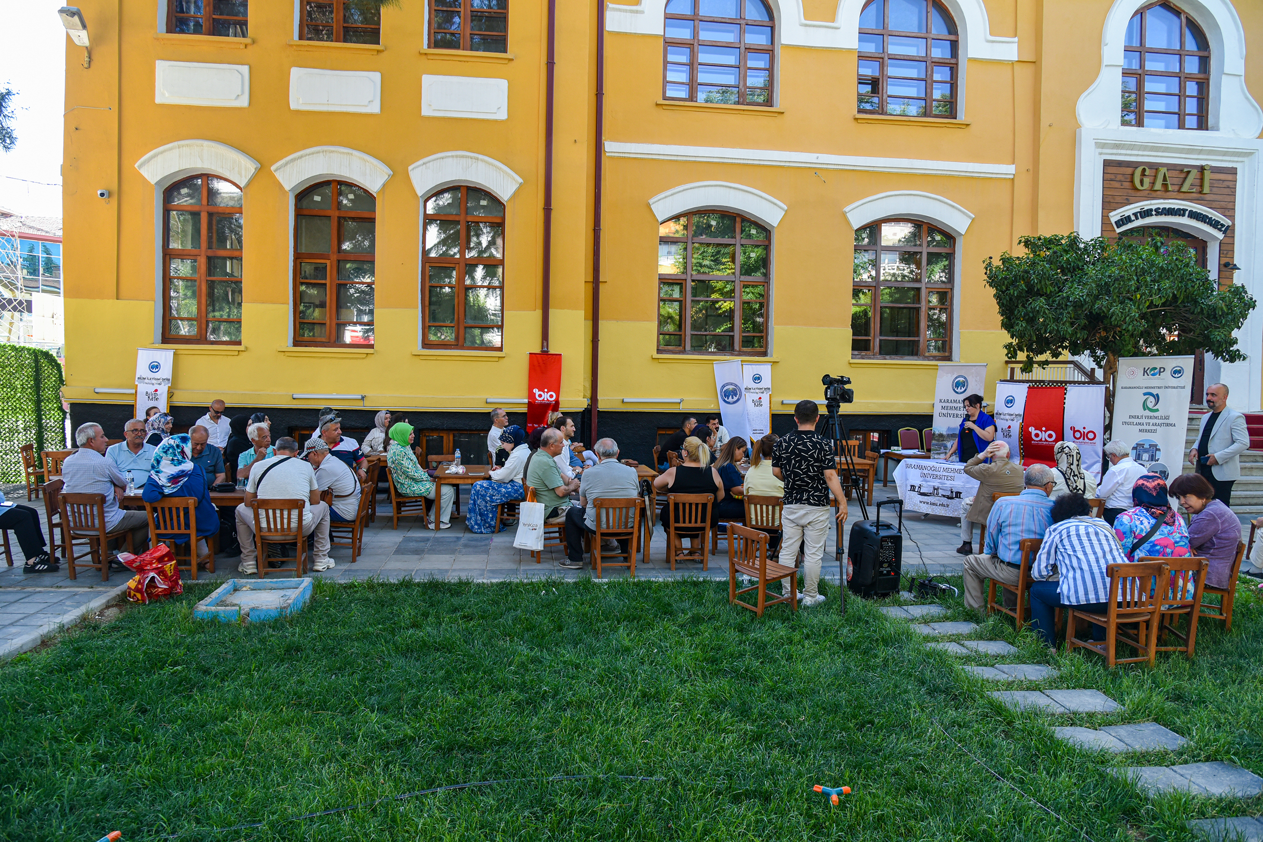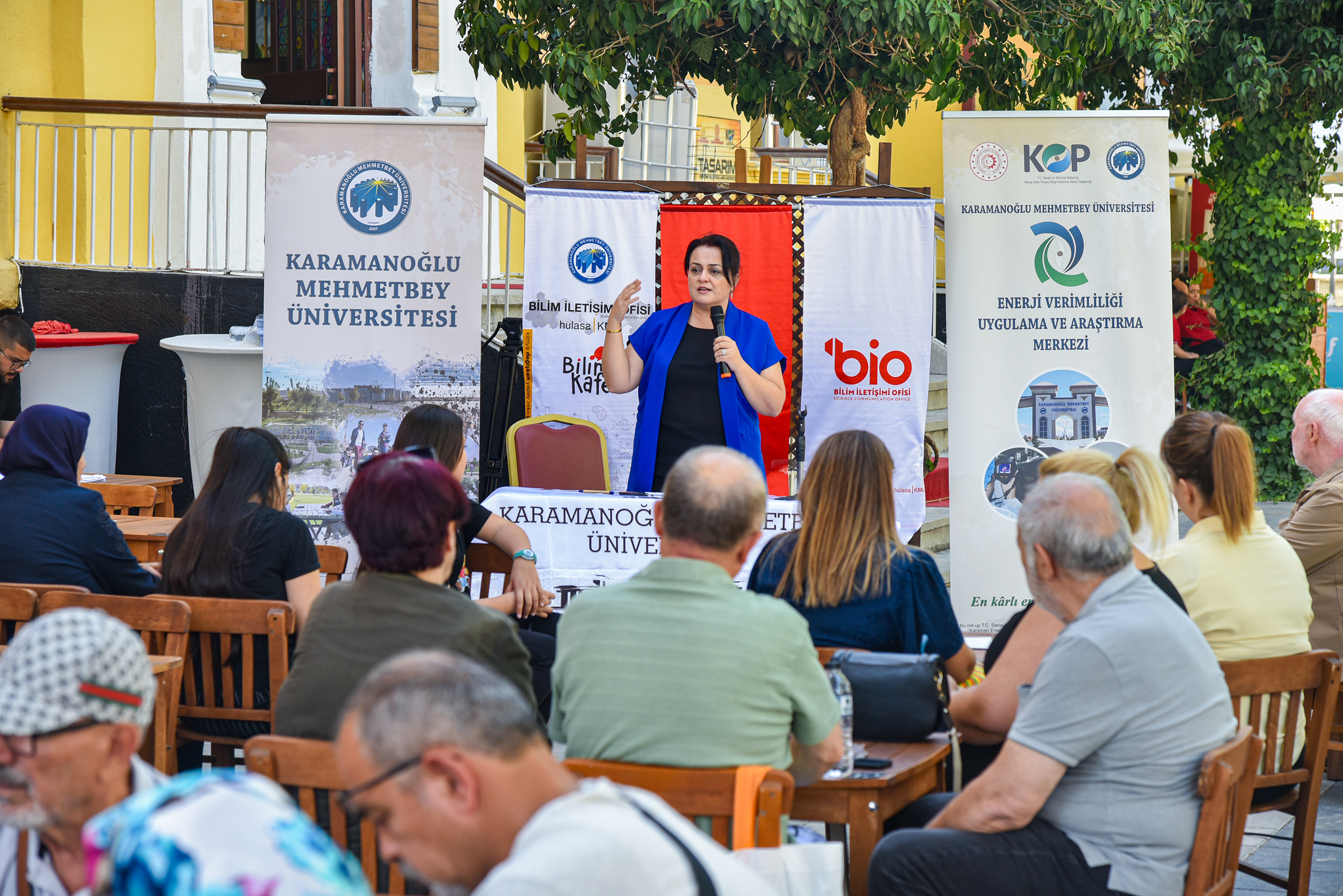Türkiye genelinde YÖK koordinasyonunda eş zamanlı olarak düzenlenen Bilim Kafe buluşmaları çerçevesinde, katılımcılar da bilimle iç içe keyifli bir zaman geçirdi. Karamanoğlu Mehmetbey Üniversitesi Bilim İletişimi Ofisi tarafından organize edilen etkinlik, Gazi Kültür Sanat Merkezi bahçesinde gerçekleştirildi. Etkinliğin moderatörlüğünü üstlenen KMÜ Bilim İletişimi Koordinatörü Öğr. Gör. Mustafa Kara, Bilim Kafe’nin temel amacının bilimi, toplumun her kesimine ulaşılabilir, sorgulanabilir ve günlük yaşamla ilişkilendirilebilir hâle getirmek olduğunu belirtti. Kara, KMÜ Bilim İletişimi Ofisi olarak bilimsel bilgiyi sadeleştirerek daha geniş kitlelere ulaştırmayı hedeflediklerini ifade etti.