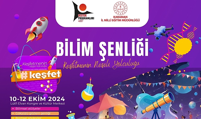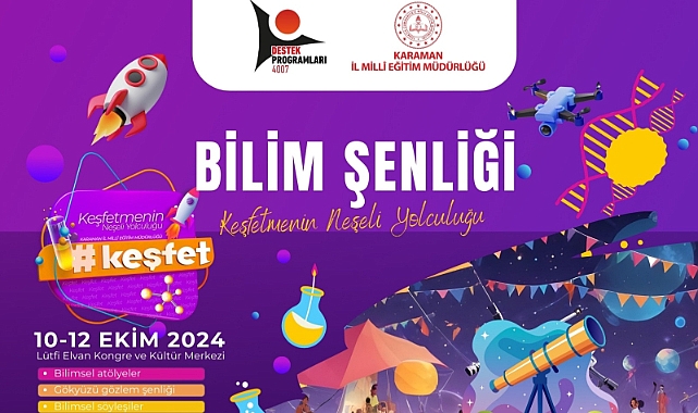 Karaman, Ekim ayında büyük bir bilim şölenine ev sahipliği yapmaya hazırlanıyor. Karaman İl Millî Eğitim Müdürlüğü ARGE Birimi tarafından 2023 çağrı döneminde başvurusu yapılan, 4007 Bilim Şenlikleri Destekleme Programı kapsamında aralarında üniversite ve diğer kamu kurum ve kuruluşlarının yer aldığı ve destek hakkı kazanan 57 projeden biri olmuştu. Bu kapsamda TÜBİTAK tarafından desteklenip Karaman İl Milli Eğitim Müdürlüğü ve SARAY-SEKASAR Vakfı iş birliğiyle düzenlenecek olan Karaman Bilim Şenliği, 10-12 Ekim 2024 tarihleri arasında Lütfi Elvan Kongre Merkezi’nde gerçekleştirilecek. Bilim ve teknolojinin buluşacağı bu üç günlük etkinlik, gençleri bilimsel keşiflere yönlendirmeyi ve onları geleceğin dünyasına hazırlamayı amaçlıyor.