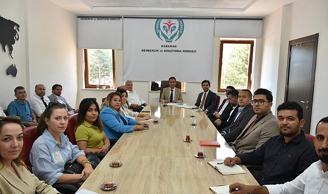Karaman Rehberlik ve Araştırma Merkezi Toplantı Salonu’nda düzenlenen toplantıya, İl Millî Eğitim Müdürü Mehmet Çalışkan başkanlık etti.