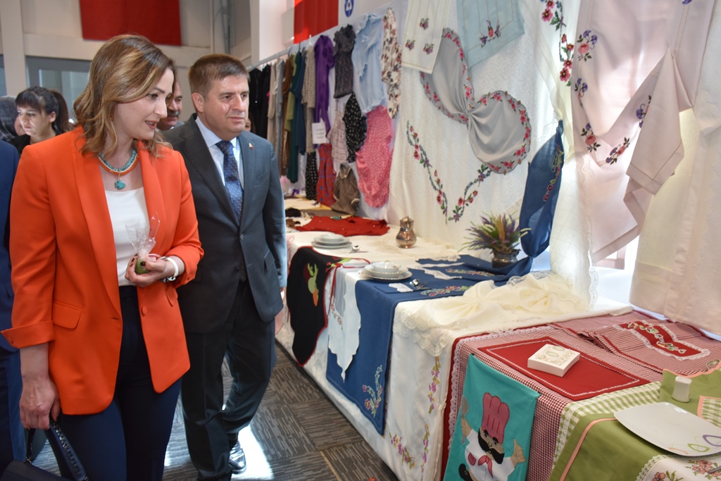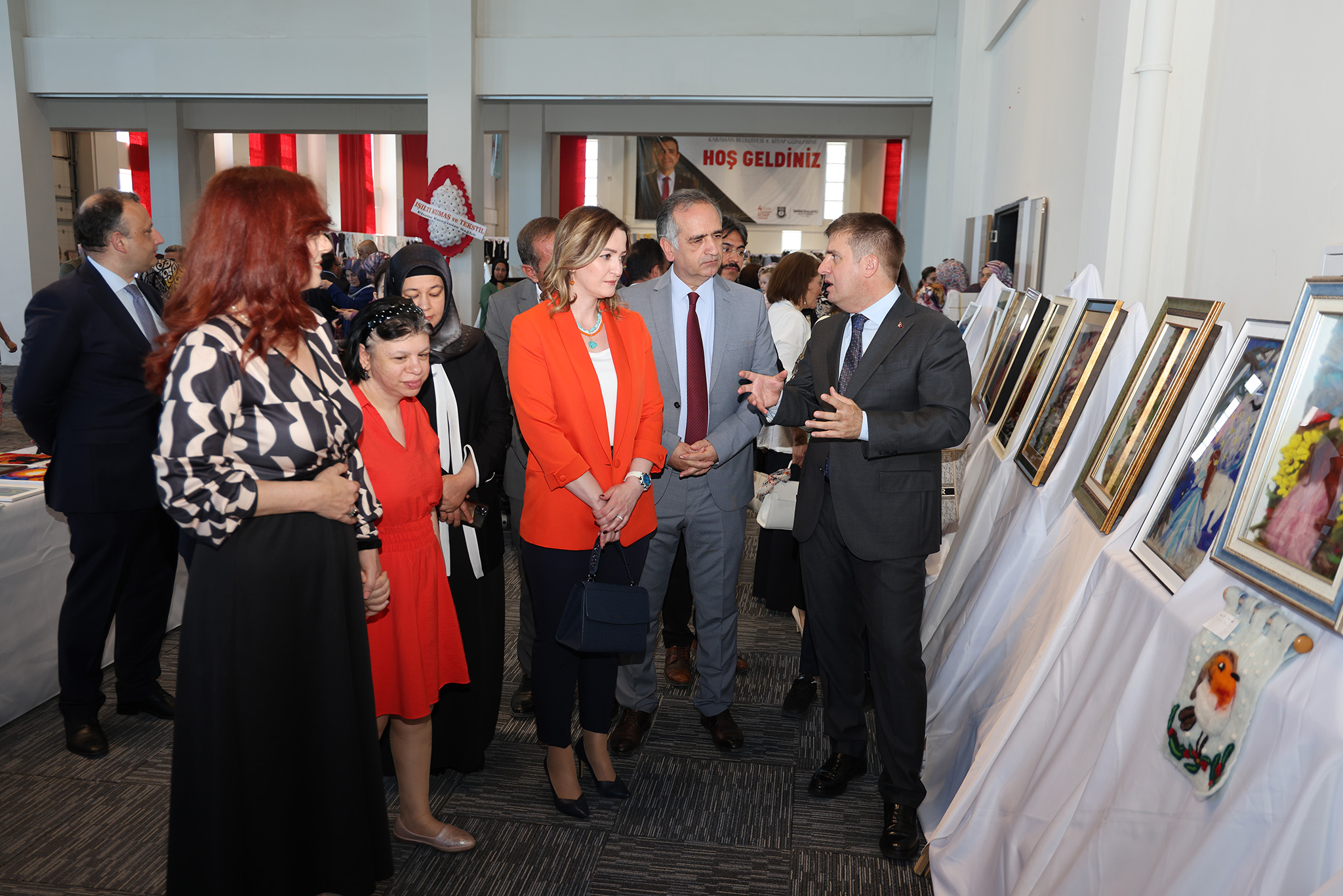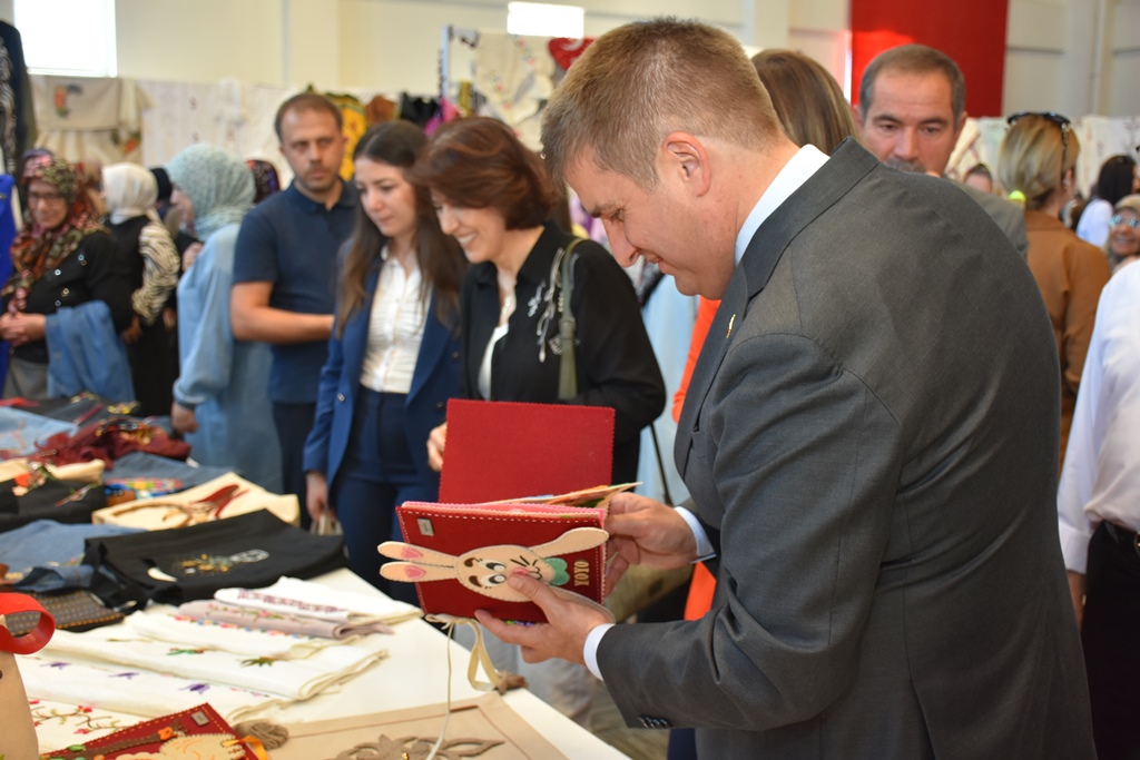 Kitre bebekten yağlı boya resimlerine, dikiş nakış işlerinden çeyiz ürünlerine kadar birçok ürünün yer aldığı el emeği göz nuru çalışmalar 5 Mayıs 2024 tarihine kadar ziyaretçilerini ağırlayacak.