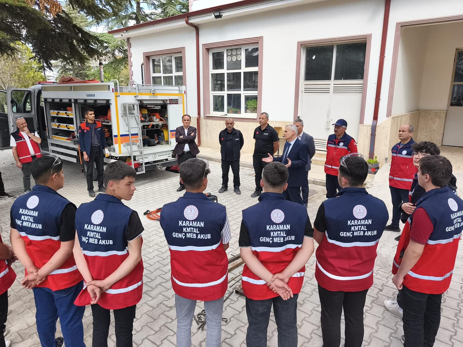 Karaman Mesleki ve Teknik Anadolu Lisesinde düzenlenen program kapsamında; iş sağlığı ve güvenliği sunumları, acil durum tatbikatları ve afet bilinci eğitimleri gerçekleştirildi. Genç MEB AKUB gönüllüleri, öğrencilere yönelik hazırladıkları interaktif sunumlarla güvenli yaşam kültürünün yaygınlaştırılmasına katkı sağladı.