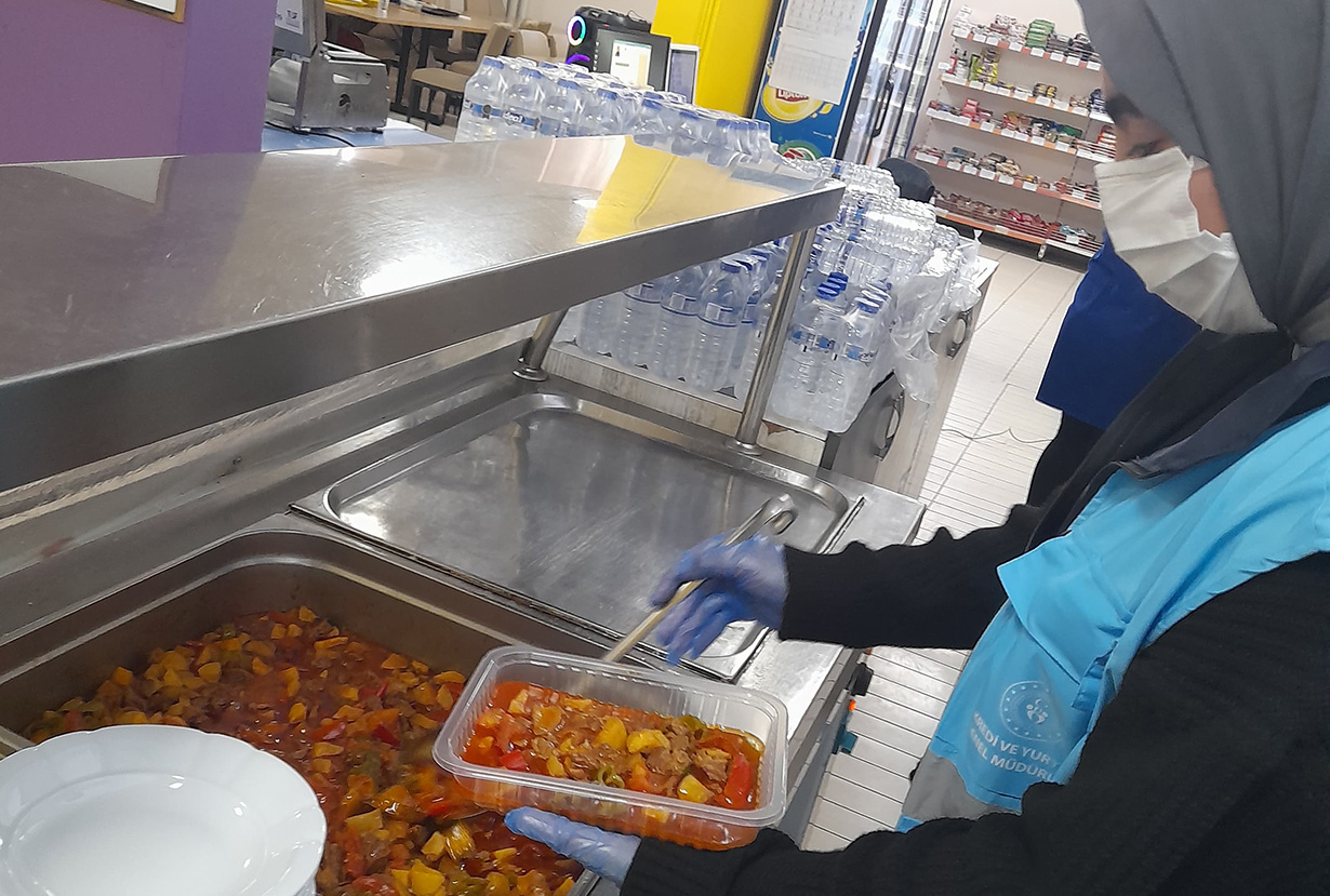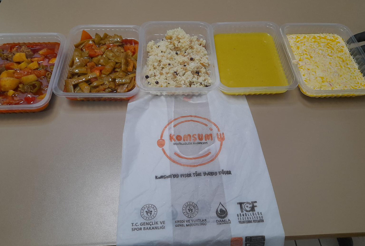 Karaman Gençlik ve Spor İl Müdürlüğüne bağlı Kazımkarabekir Mehmet Emin Paşa Yurdu’nda kalan gönüllü gençler, “Komşum Gönüllülük Hareketi” projesi kapsamında artan yemekleri ihtiyaç sahibi komşularıyla paylaşmaya devam ediyor.