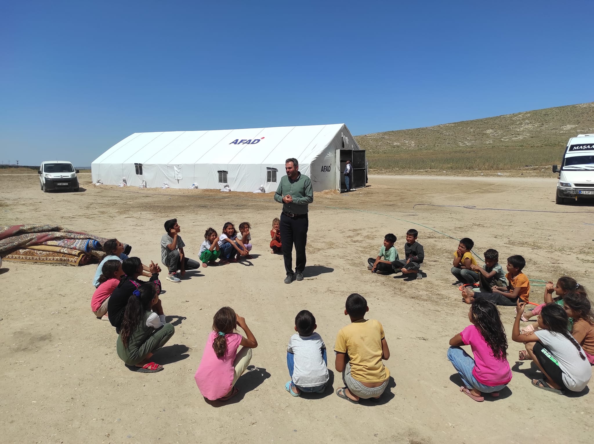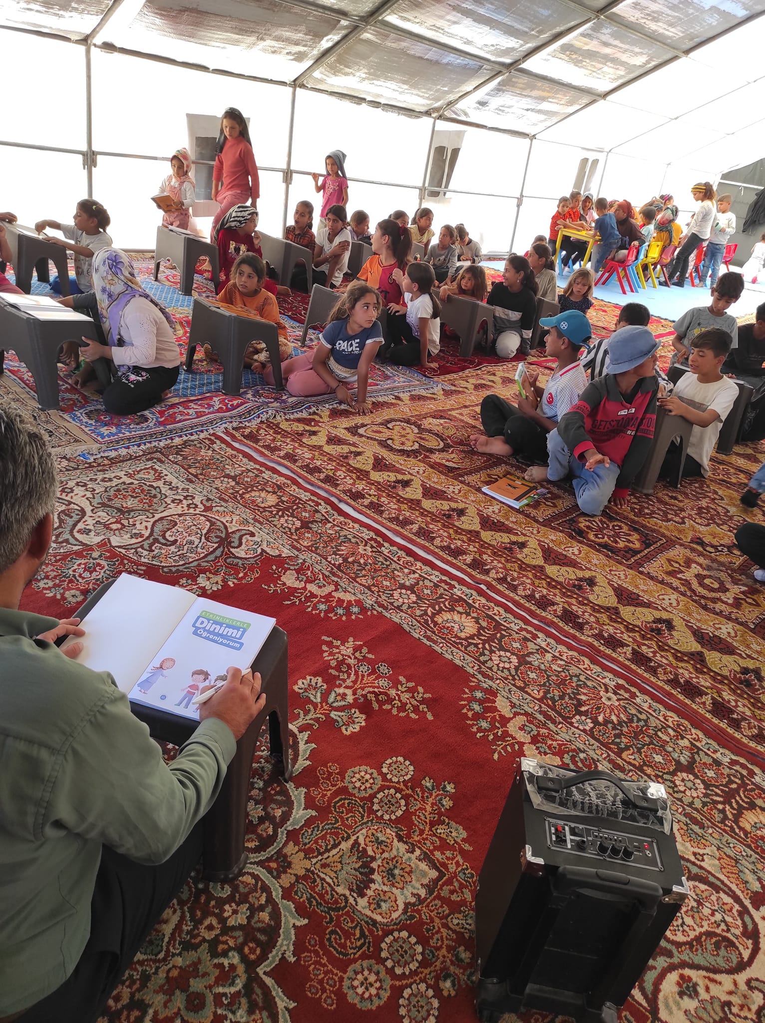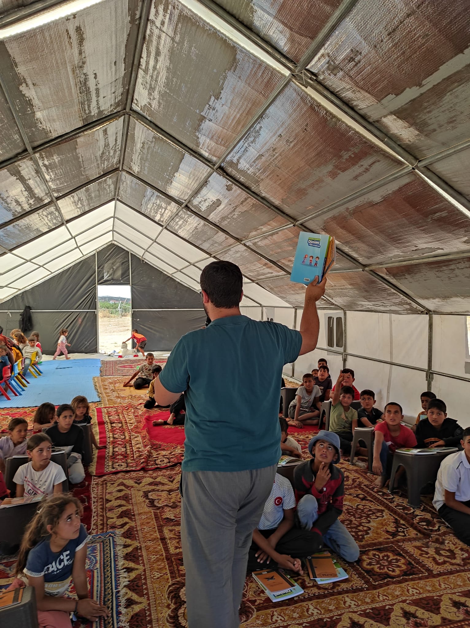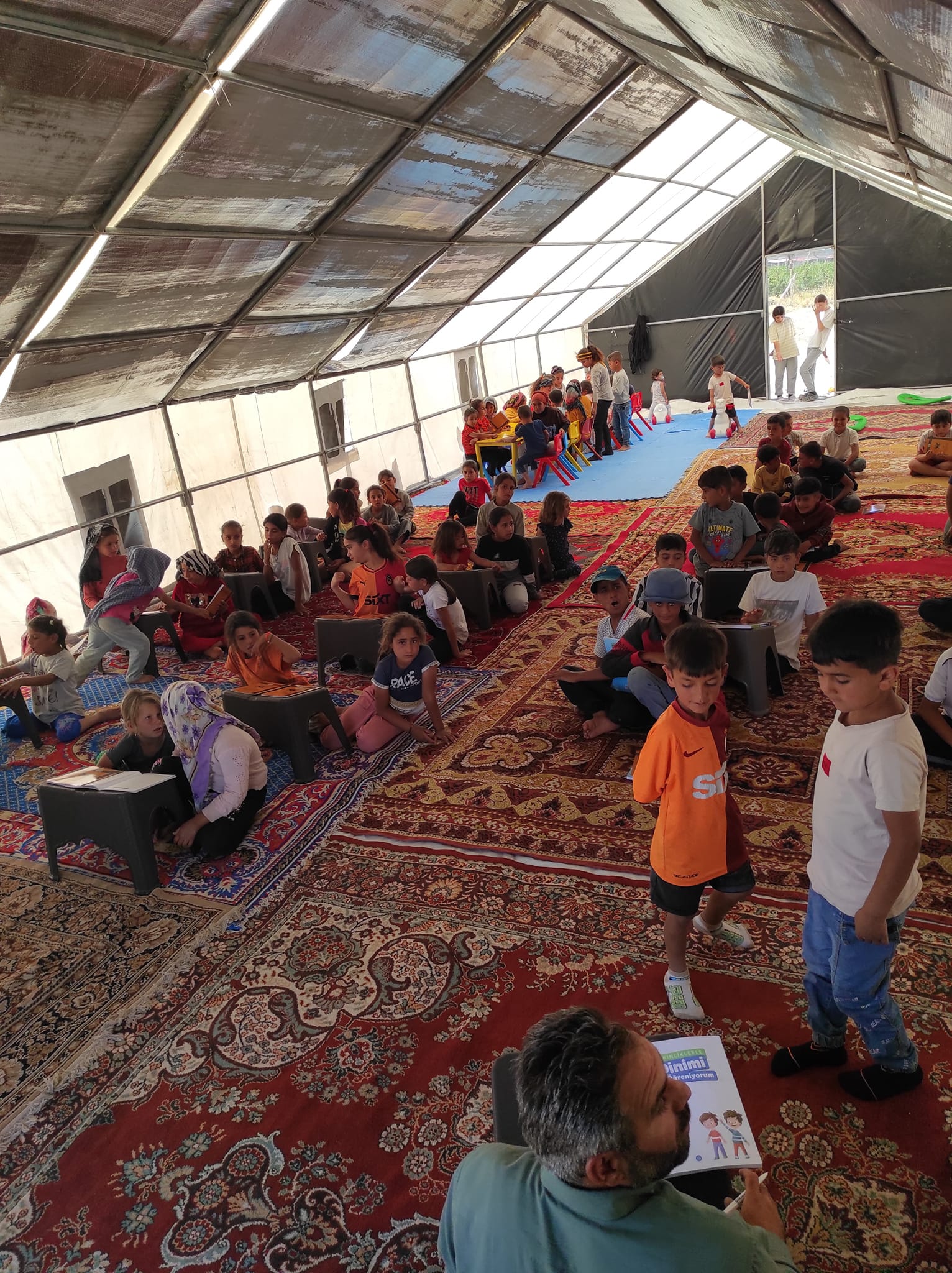 Karaman’da Mevsimlik Tarım İşçilerinin Yaşadığı Çadır Kentte Yaz Kur’an Kursu AçıldıKaraman’da Şanlıurfa bölgesinden gelen mevsimlik tarım işçilerinin çocukları için çadır Yaz Kur'an Kursu açıldı.Karaman Valiliği, Karaman İl Müftülüğü ve Karaman İl Afet ve Acil Durum Müdürlüğü işbirliği ile Engin Tarım (Umde Tarım) bölgesine, Şanlıurfa bölgesinden gelen mevsimlik tarım işçilerinin çocukları için açılan çadır Yaz Kur'an Kursu’nda ilk ders işlendi. Her bir öğrenciye eğitim sürecinde kullanacakları kitapları verildi.Çadır kursun açılmasında emeği geçen tüm kurum ve çalışanlara teşekkür ederiz.