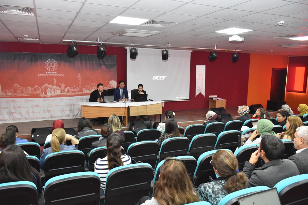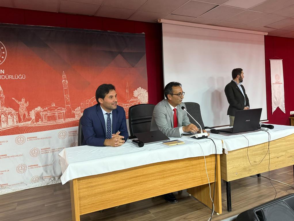 Eğitimin ilerleyen bölümünde öğretmenlerle buluşan İl Millî Eğitim Müdürü Mehmet Çalışkan, proje kültürünün eğitimdeki dönüştürücü etkisine dikkat çekti. Çalışkan, her projenin bir vizyonun ürünü olduğunu belirterek, Karaman’da yürütülen proje temelli çalışmaların Türkiye Yüzyılı vizyonu ile uyumlu olduğunu vurguladı. Öğretmenlerin bu konudaki gayreti sayesinde Karaman’ın, proje üreten iller sıralamasında daha üst seviyelere taşınacağına inandığını ifade etti.