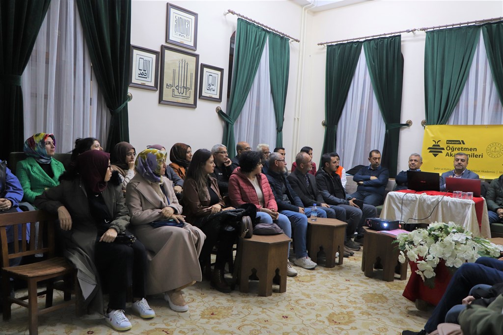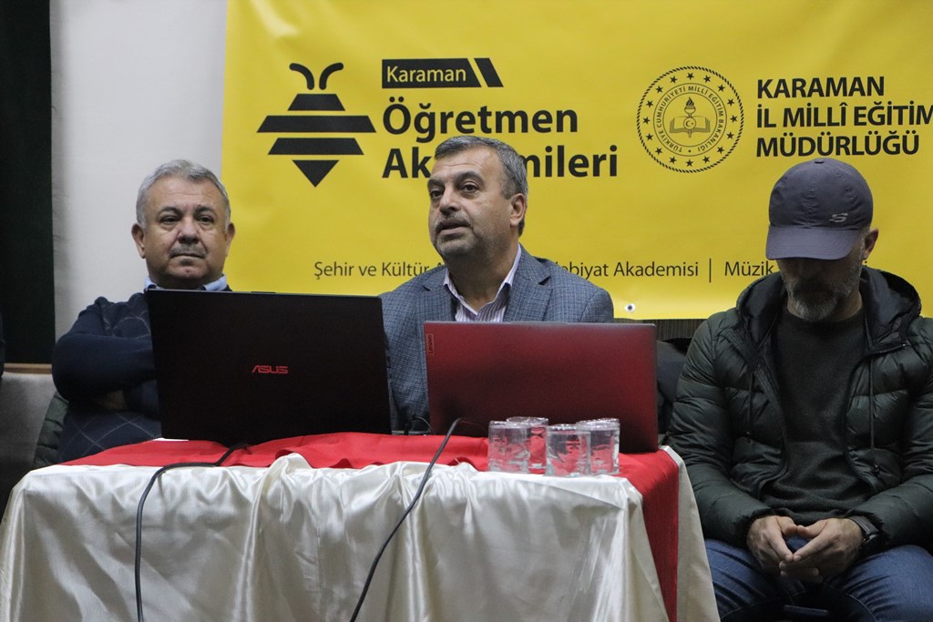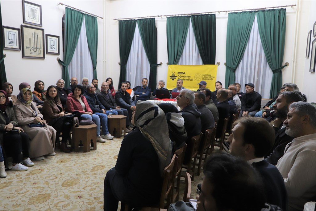 Millî Eğitim Bakanlığının öcülüğünde yürütülen Karaman Öğretmen Akademileri kapsamında, Karaman’da Şehir ve Kültür Akademisi etkinlikleri devam ediyor. Bu hafta Türk İslam Eserleri Müzesi Müdürü Ekrem Aytar, Karaman'daki eğitimcilerle buluşarak “Medeniyet, Hafıza ve Türk İslam Eserleri Müzesi” üzerine keyifli ve bilgilendirici bir söyleşi gerçekleştirdi.