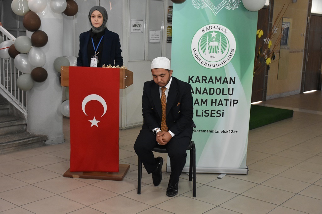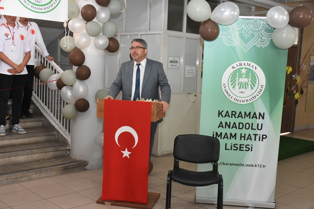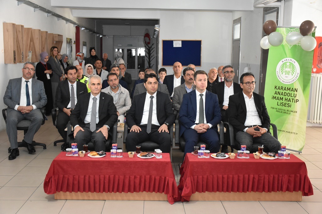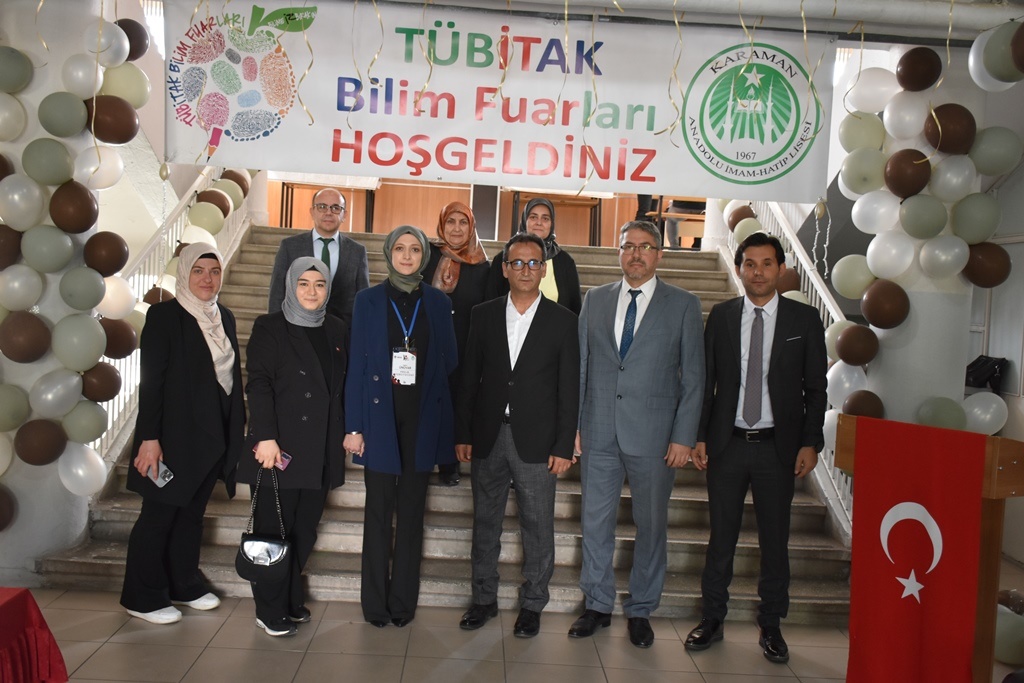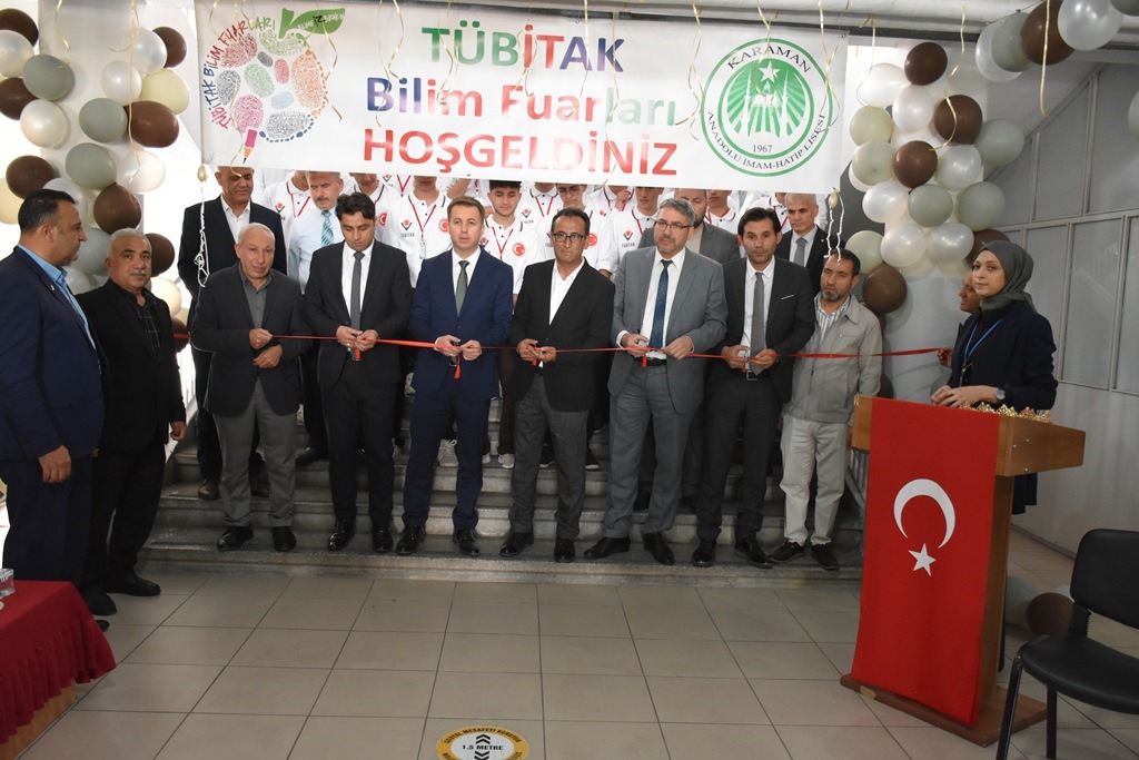 Karaman Anadolu İmam Hatip Lisesinde düzenlenen TÜBİTAK 4006 Bilim Fuarı’nın açılış programında, öğrenciler tarafından hazırlanan projeler beğeniye sunuldu. Programın açılış konuşmasını Okul Müdürü Mustafa Özer yaptı. Açılış kurdelesi, Cumhuriyet Başsavcısı Ali İhsan Akdoğan, Adli Yargı Adalet Komisyonu Başkanı Osman Yılmaz, İl Millî Eğitim Müdürü Mehmet Çalışkan, İl Millî Eğitim Müdür Yardımcıları İsmail Kılınç ve Abdurrahman Kurt, İl Millî Eğitim Şube Müdürü Mehmet Ali İyibaş, STK temsilcileri, okul yöneticileri ve öğrencilerin katılımıyla kesildi.