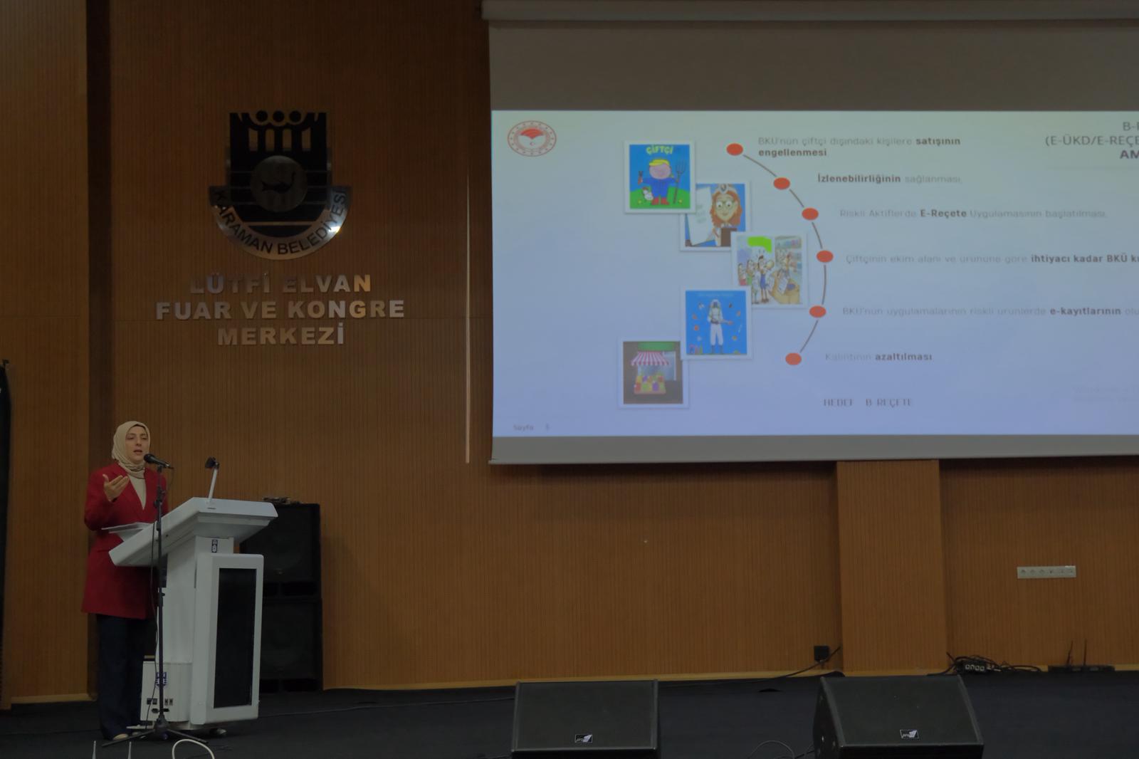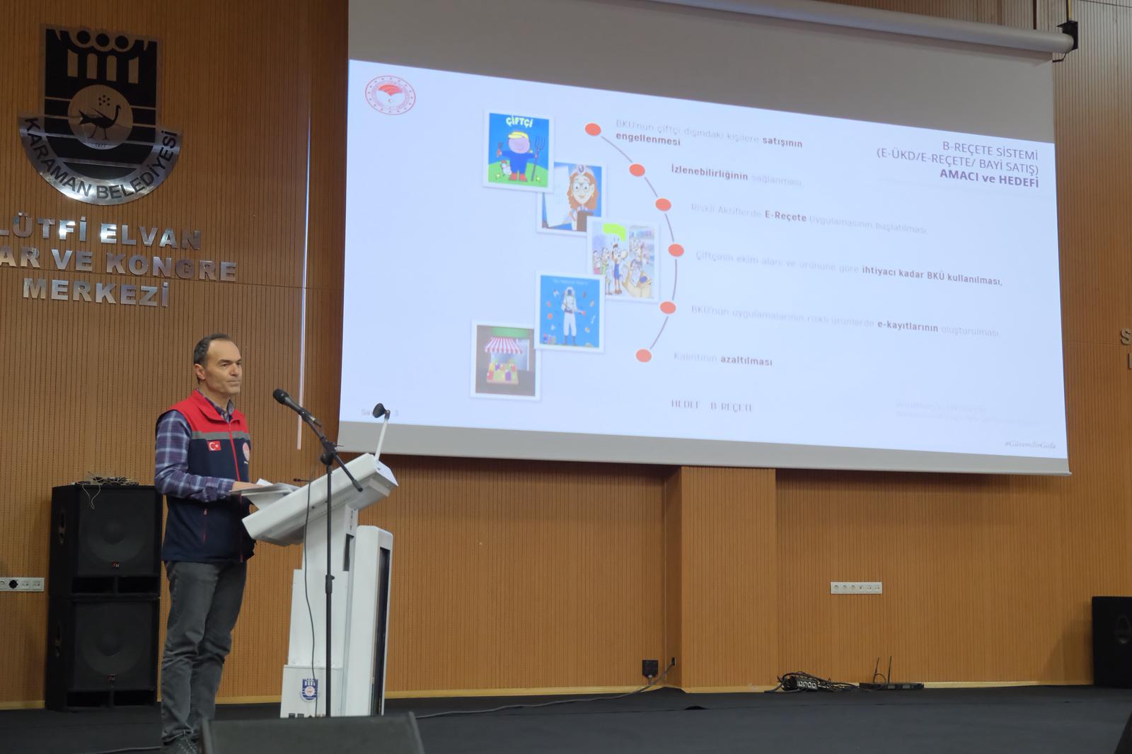 Eğitimde konuşan Karaman Tarım ve Orman İl Müdürü Bulut, tarımsal üretimde bilinçli ilaç kullanımının önemine dikkat çekti. İl Müdürü Bulut, Karaman Tarım ve Orman Müdürlüğü olarak üreticilerin bilinçli, sürdürülebilir ve güvenli tarımsal üretim yapabilmeleri için eğitim ve bilgilendirme çalışmalarının aralıksız sürdürüleceğini ifade etti.