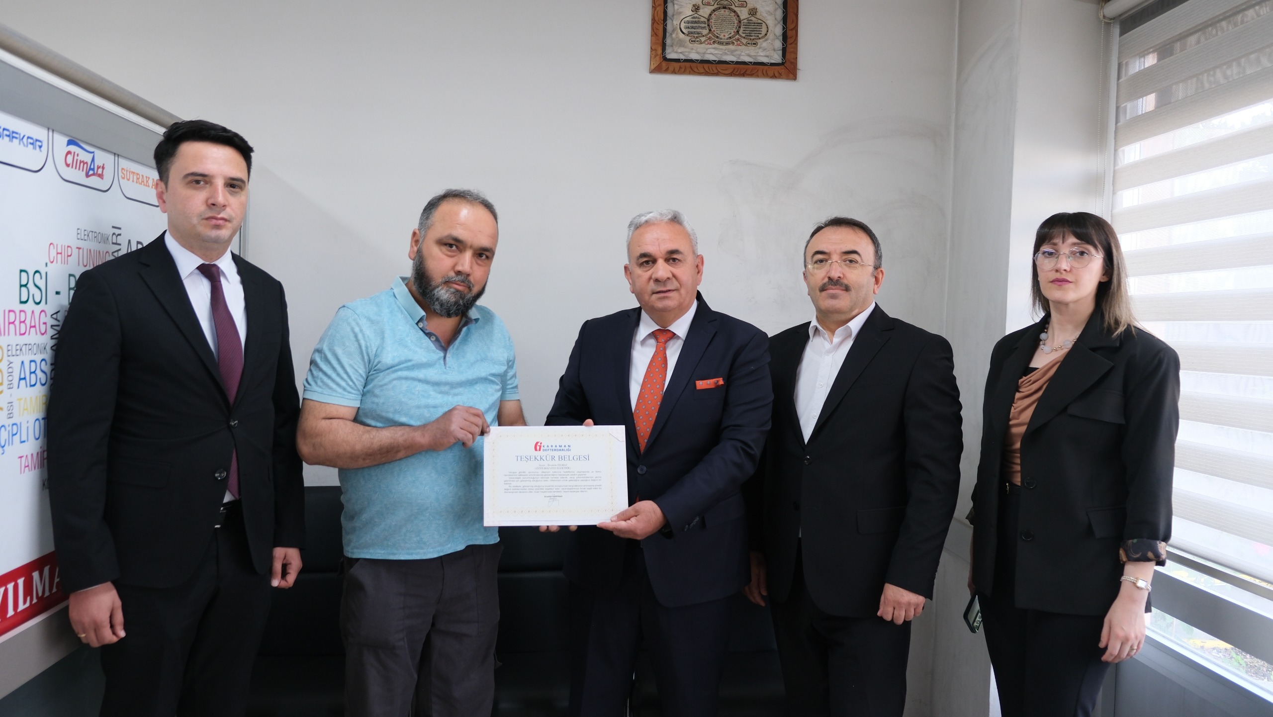 Ziyarette, işletme sahibi İbrahim Yılmaz’a, vergiye gönüllü uyumu teşvik eden ve toplumsal vergi bilincine katkı sağlayan duyarlı tutumu nedeniyle teşekkür belgesi takdim edildi. Belgede, örnek davranışların takdirle karşılandığı, vergiye gönüllü uyumun ülke kalkınmasına önemli katkı sunduğu vurgulandı.