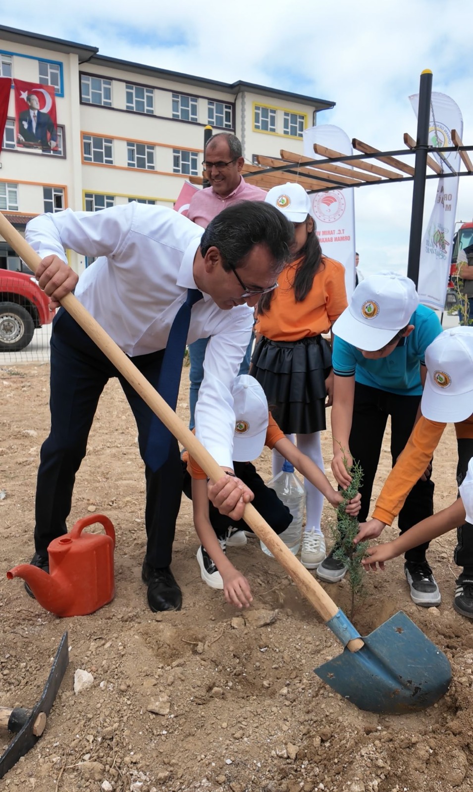 Açılış konuşmasını yapan Toki İlkokulu Müdürü Hacı Arif Yalçın’ın ardından söz alan İl Millî Eğitim Müdürü Mehmet Çalışkan, orman yangınlarına dikkat çekerek dikilen fidanların geleceğe dair umutları temsil ettiğini söyledi. Çalışkan, “Çocuklarımıza doğa sevgisi aşılamak, çevre bilincini artırmak ve sürdürülebilir bir yaşam kültürü oluşturmak, geleceğimiz için yapılabilecek en kıymetli yatırımdır” ifadelerini kullandı.