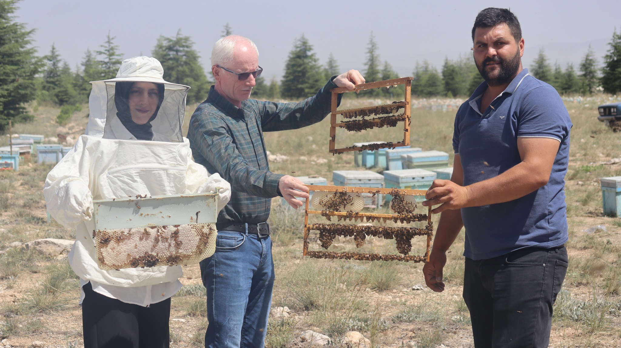 GÜLCAN ARICILIKHalil Gülcan, eşi Meryem Gülcan ve kız kardeşi Havvanur Eriş ile birlikte Kafkas,Belfaks,Karniol ve İtalyan Irkı 3000 ana arı üretimi yapıyor. Türkiye'nin her iline ve Kıbrıs'a ana arı tedariki yapılan işletmede Halil Gülcan Ana Arı Üretimi,Damızlık Ana Arı Koloni ve Ana Arı Bankalama konusunda bilgi verdi. Arılarda Suni Tohumlama işinin Havvanur Eriş tarafından yapıldığı işletme ziyareti sonrasında Över Arıcılığı ziyaret etti.
