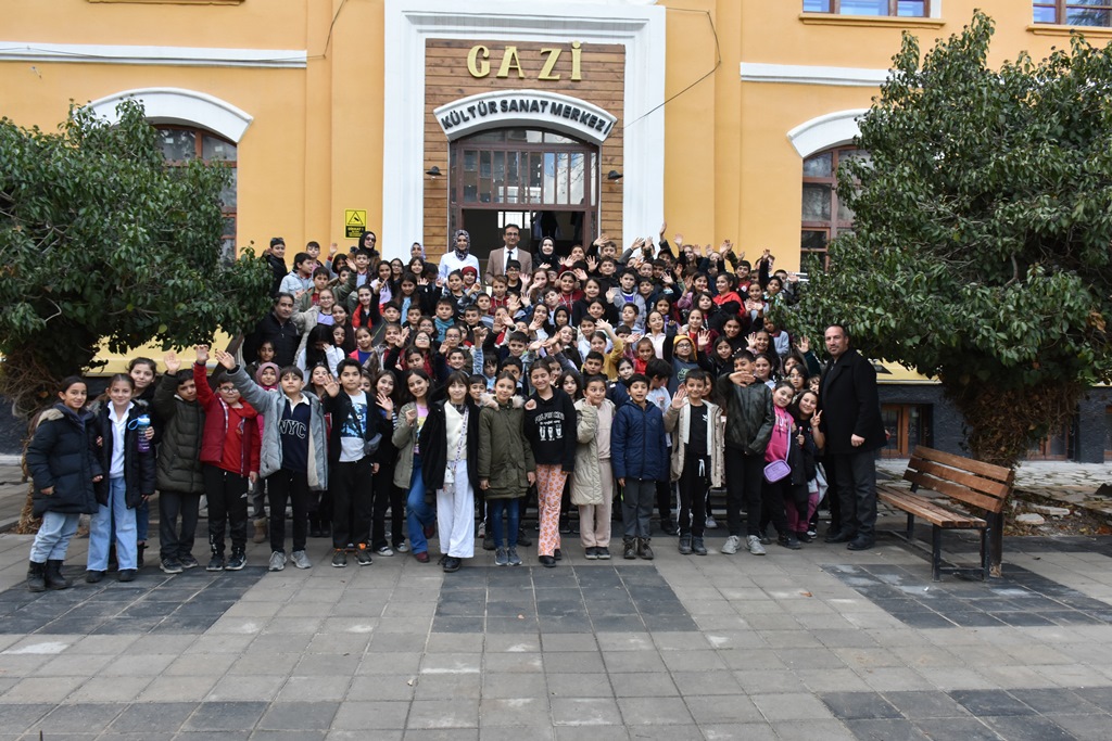 Gazi Mustafa Kemal İlkokulunda düzenlenen program sonrasında Gazi Kültür Sanat Merkezine geçen İl Müdürü Mehmet Çalışkan, “dönem sonu faaliyet haftası” kapsamında merkezi ziyaret eden Sabiha Gökçen Ortaokulu öğrencilerle birlikte kurum içerisinde yer alan eğitim müzesini, sınıfları ve bölümleri gezdi.