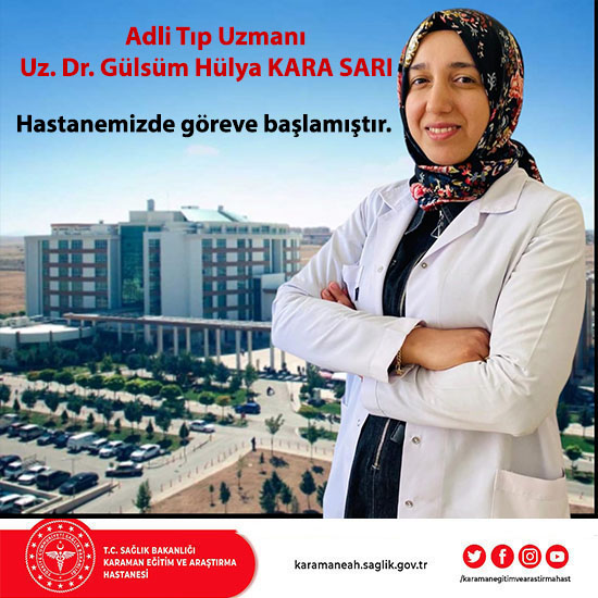 Karaman Eğitim ve Araştırma Hastanesi Hekim Kadrosuna Dört Uzman Hekim Atandı.Karaman Eğitim ve Araştırma Hastanesi Sosyal Medya Hesabından:''Hastanemize atanan Adli Tıp Uzmanı Dr. Gülsüm Hülya Kara Sarı, Fizik Tedavi ve Rehabilitasyon Uzmanı Dr. Burak Demir, Çocuk Sağlığı ve Hastalıkları Uzmanı Dr Onur Uğurlu, Ortopedi ve Travmatoloji Uzmanı Dr Eray Ertürk Engin hastanemizdeki görevlerine başlamışlardır. Göreve başlamış olan hekimlerimiz ile kadromuz güçlenmeye devam etmektedir. Hasta kabulüne başlayan doktorlarımıza başarılar diler, ilimiz ve hastalarımız için hayırlı olmasını temenni ederiz.'' ifadeleri kullanıldı.