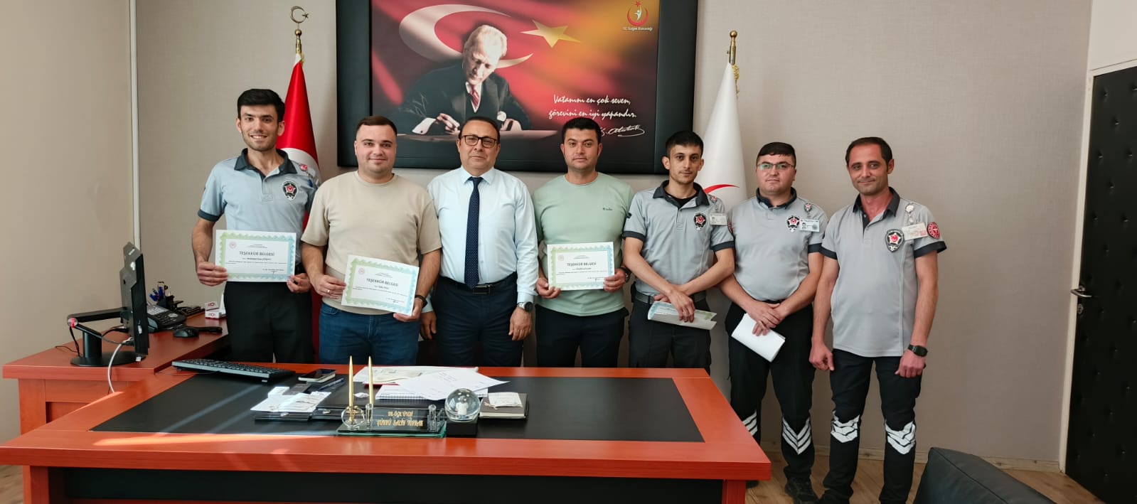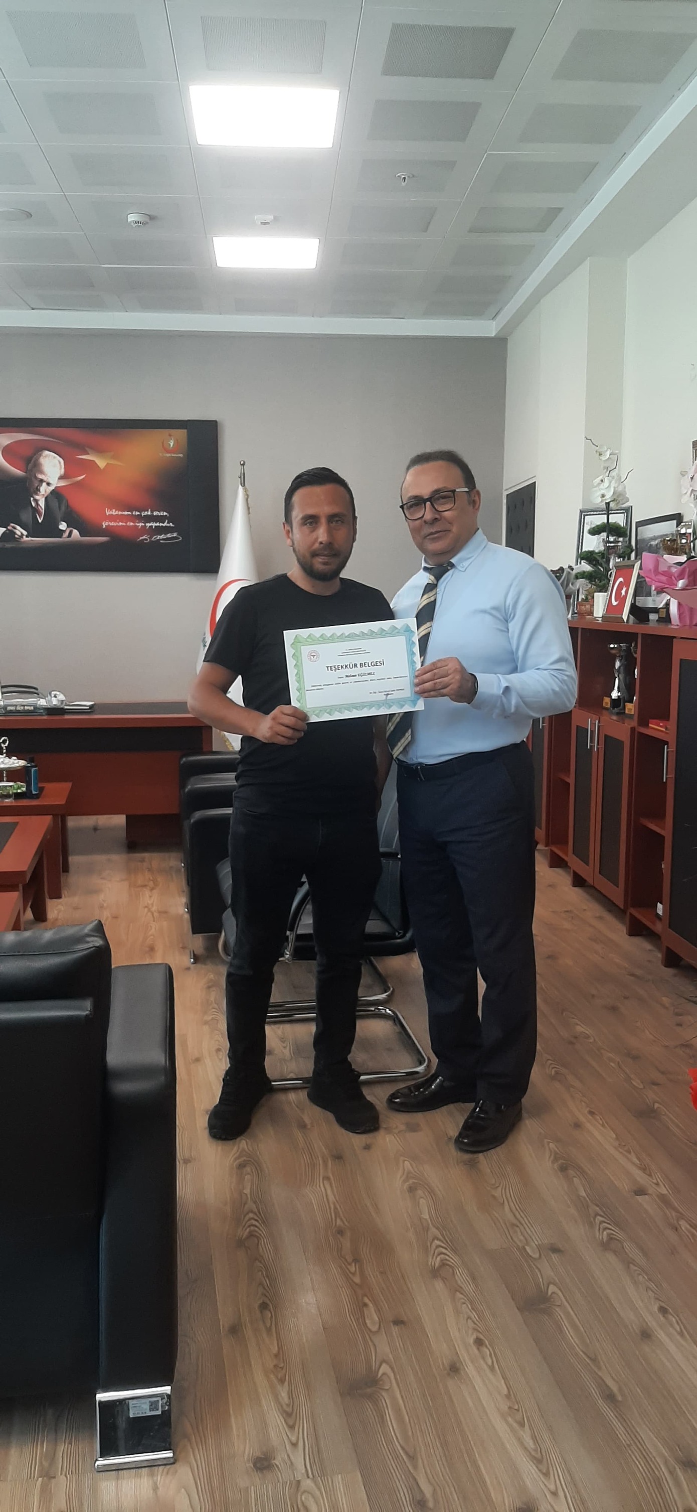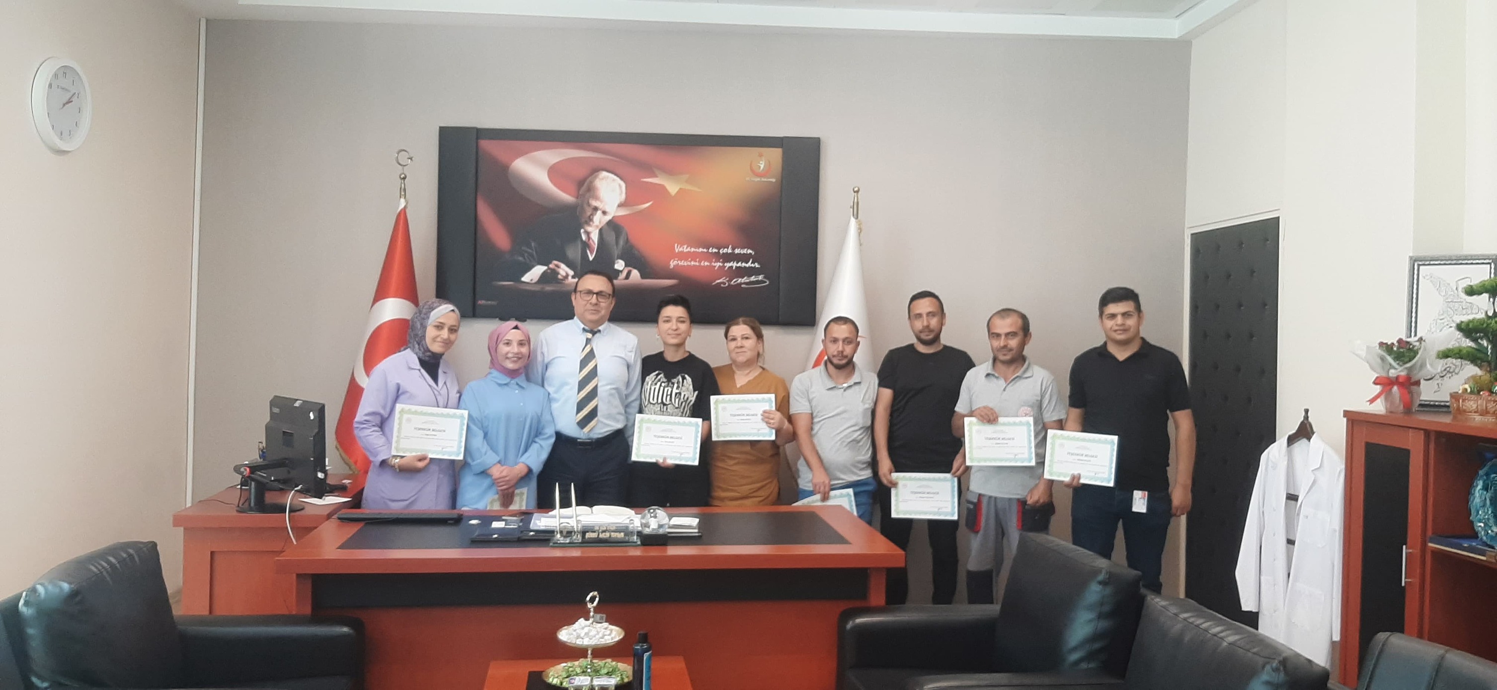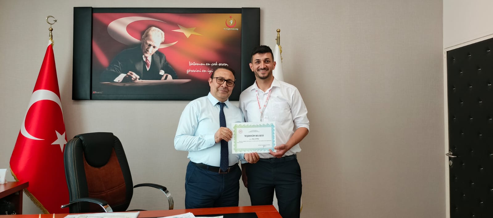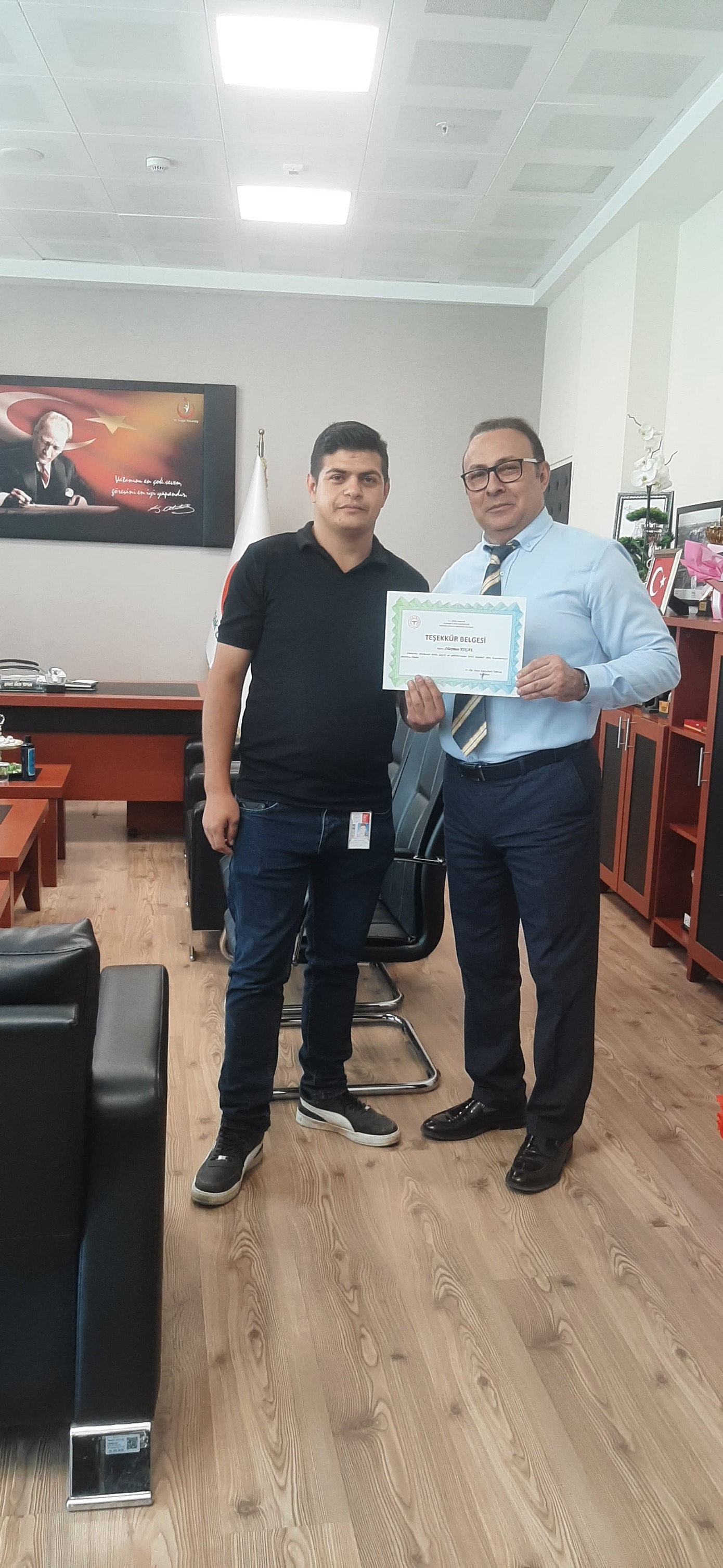 Başhekimlik makamında düzenlenen belge takdim töreninde, Başhekim Dr. Öğr. Üyesi Şükrü Salih Toprak, ilgili personele başarı belgelerini takdim etti. Başhekim Toprak, çalışanlara teşekkür ederek, hastanemizin hizmet kalitesinin artmasında önemli katkıları olan personelin özverili ve gayretli çalışmalarının devamını diledi.