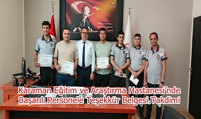 Karaman Eğitim ve Araştırma Hastanesi’nde Başarılı Personele Teşekkür Belgesi Takdimi