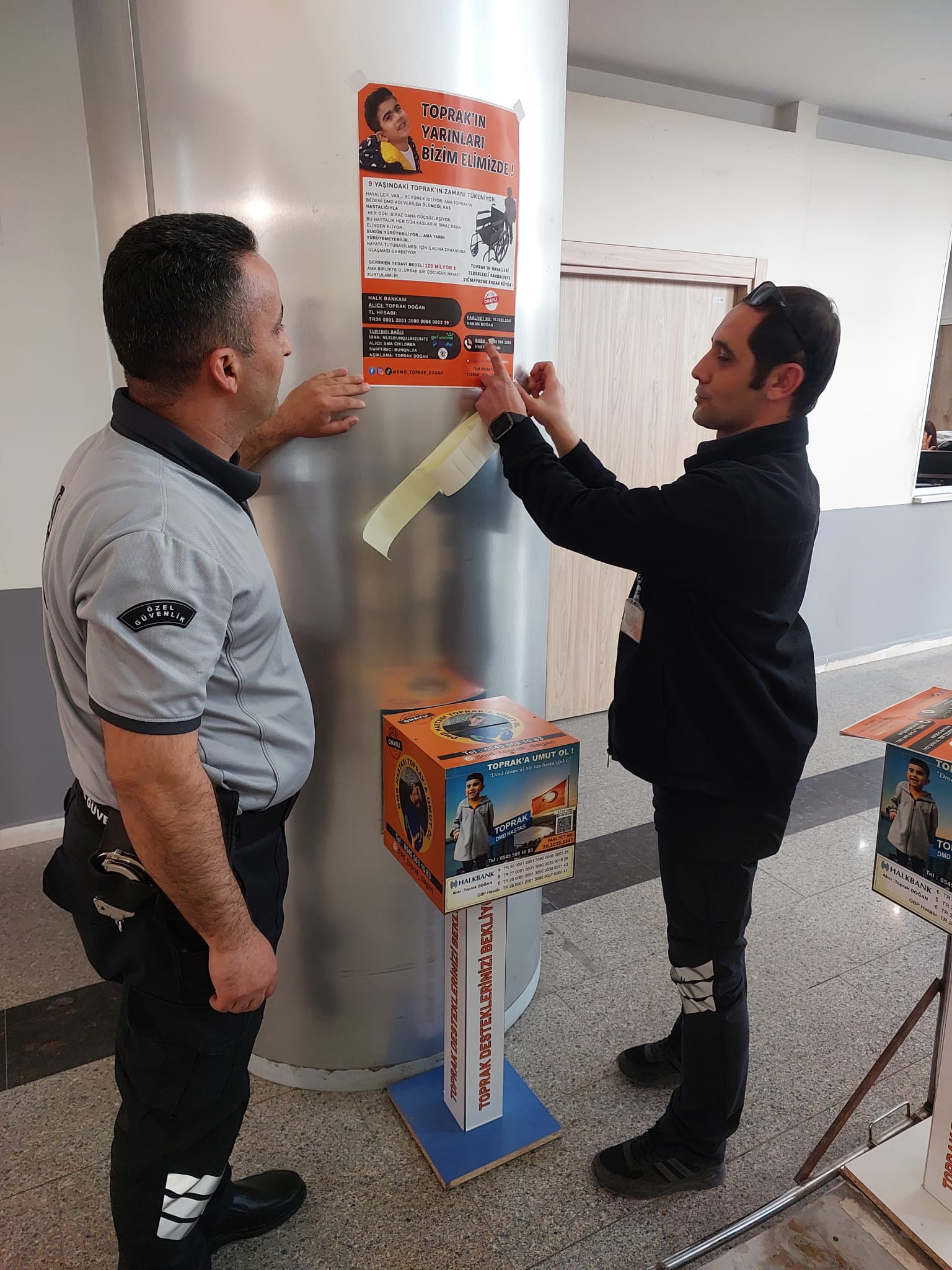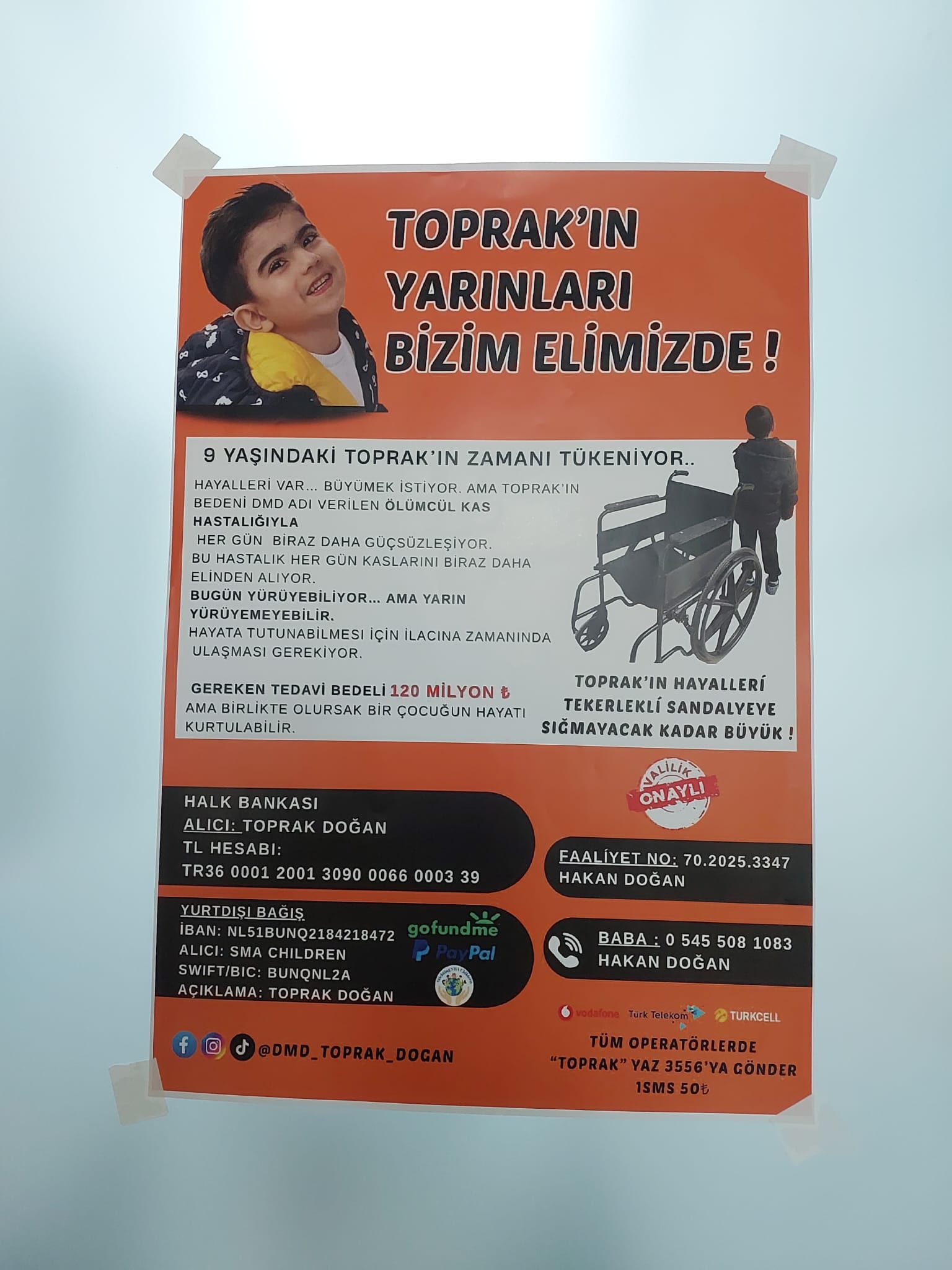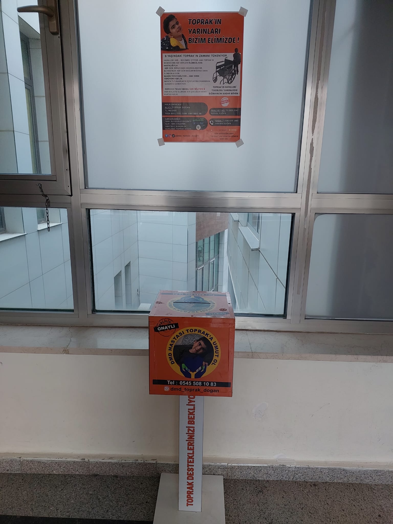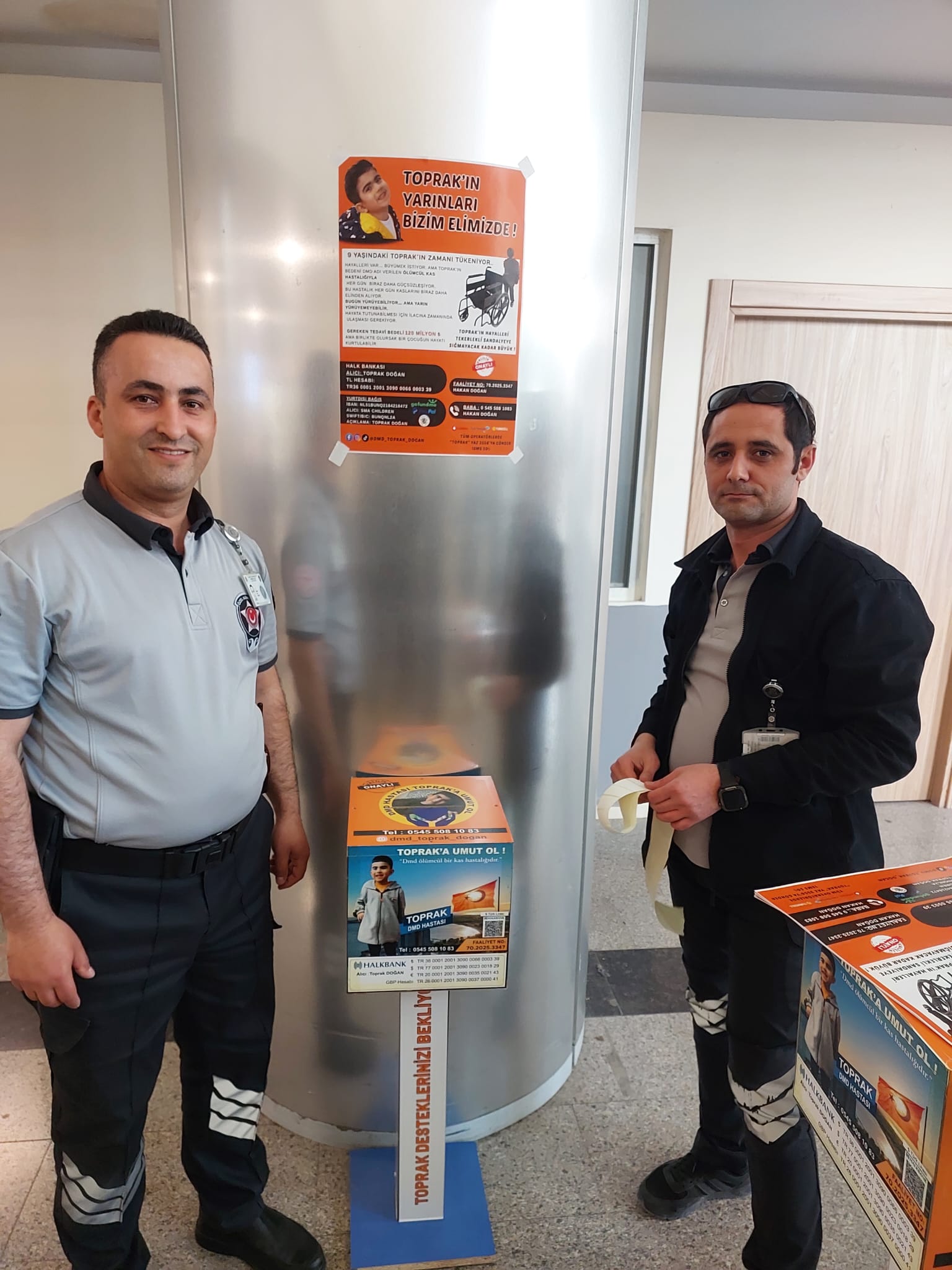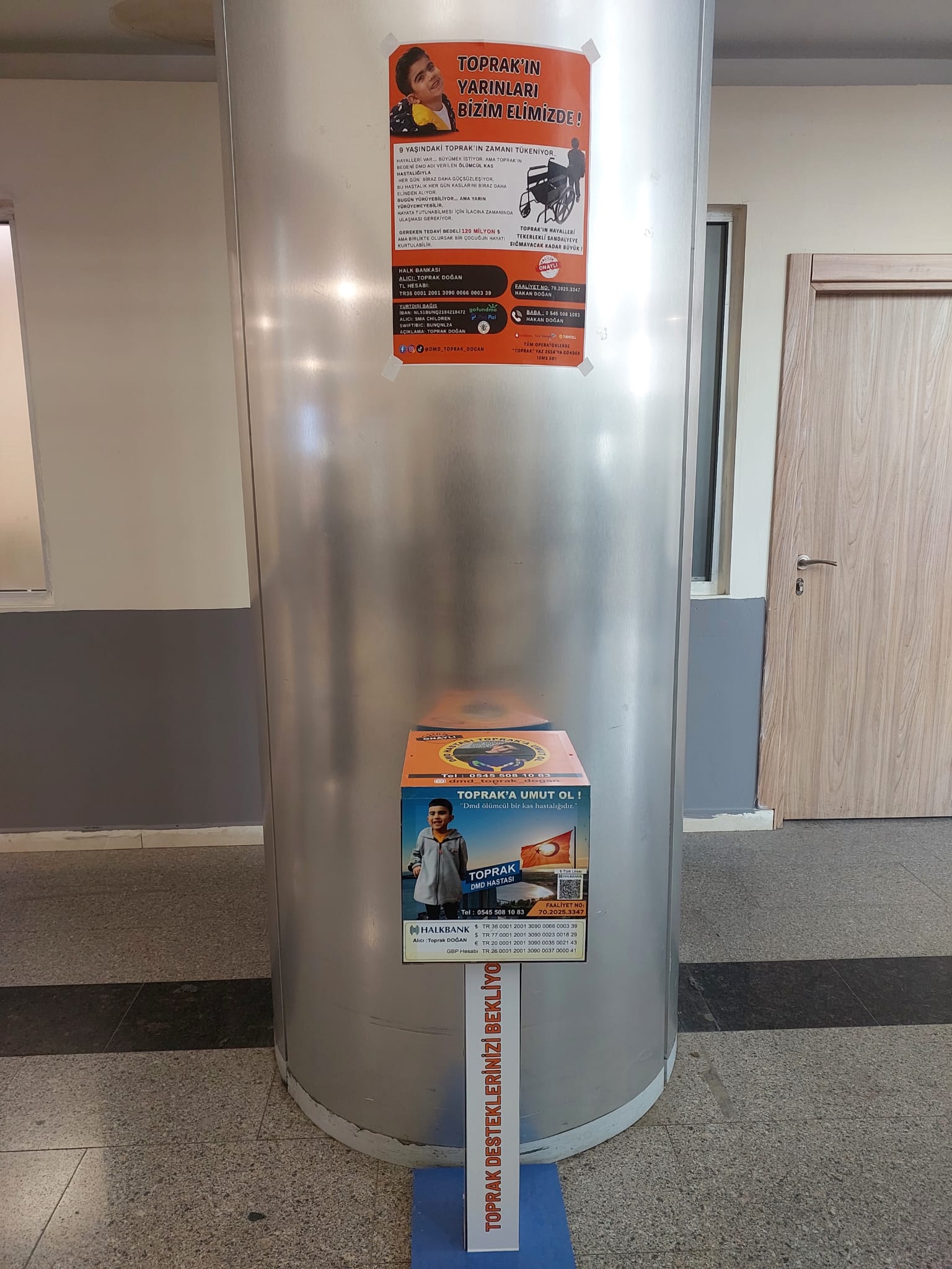 Hastane yönetimi tarafından yürütülen çalışma kapsamında, Toprak Doğan’ın tedavisi için gerekli olan maddi desteğin sağlanmasına katkıda bulunmak ve toplumda farkındalık oluşturmak amacıyla hastanenin çeşitli alanlarına bilgilendirici afişler ve yardım kutuları yerleştirildi.