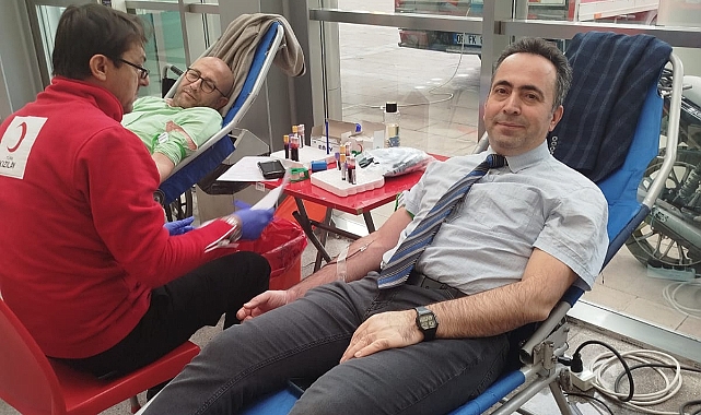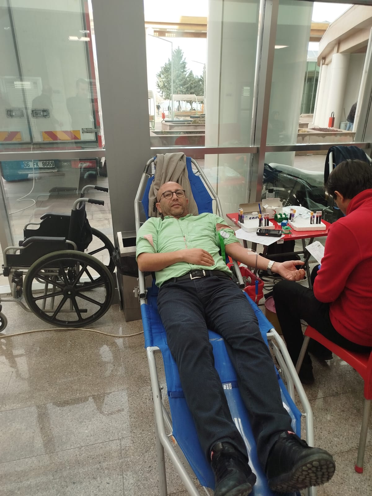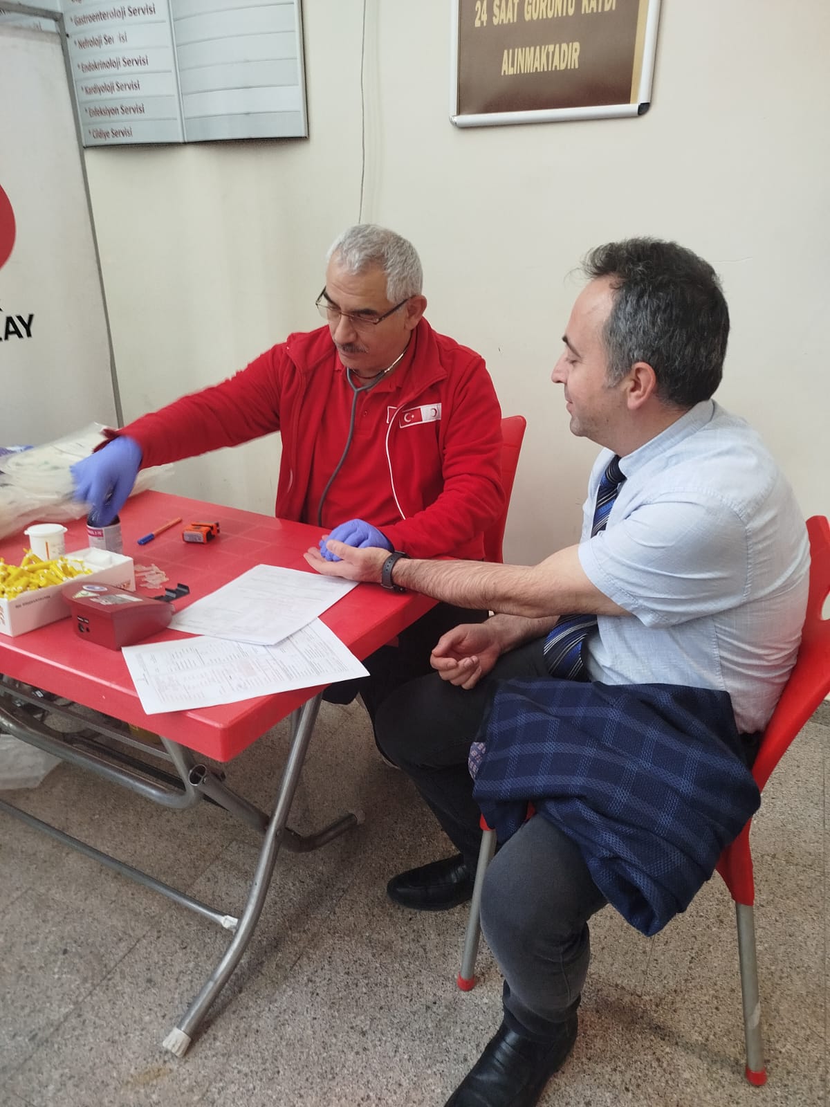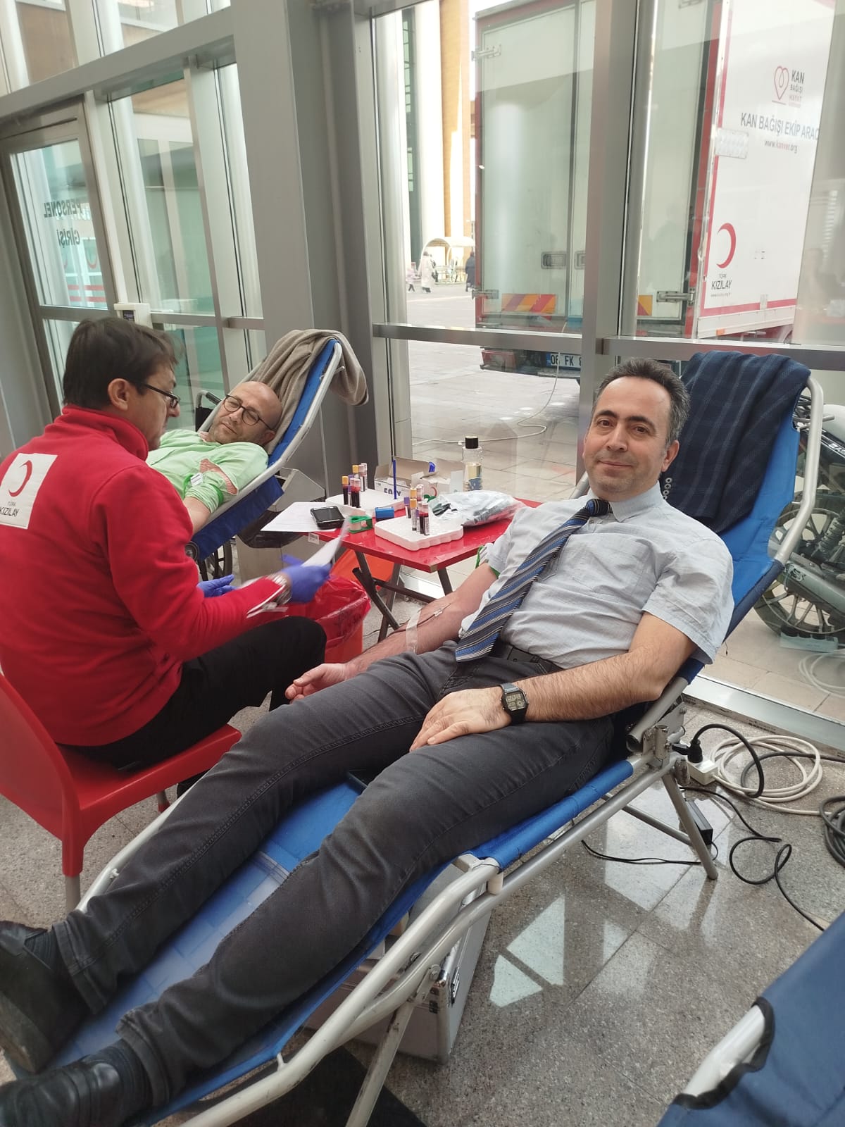 Hastanemizde Kan Bağışı Kampanyası DüzenlendiTürk Kızılay iş birliğiyle 26 Aralık 2024 tarihinde hastanemizde görev yapan sağlık çalışanları ve hasta yakınlarının katılımıyla kan bağışı kampanyası yapıldı. Hastanemiz Başhekimlik girişindeki alanda Kızılay Kan Bağış Ekibi kan vermek isteyen gönüllüleri ağırladı. Başta Hastanemiz Başhekimi Prof. Dr. Ercan ERDOĞAN ve Başhekim Yardımcısı Dr. Ahmet GÖREN olmak üzere, hastane yönetimi, personellerimiz ve vatandaşlar kan bağışında bulundu.Hastanemiz Başhekimi Prof. Dr. Ercan ERDOĞAN; “Kan bağışı ihtiyacı olan hastalarımız için çok önemli bir hizmettir. Bu konuda farkındalık yaratmak ve insanları kan bağışına teşvik etmek hepimizin görevidir. Kızılay’ın desteği ile yapılan kampanyada emeği geçen ve kan bağışında bulunan herkese teşekkür ederim.” dedi