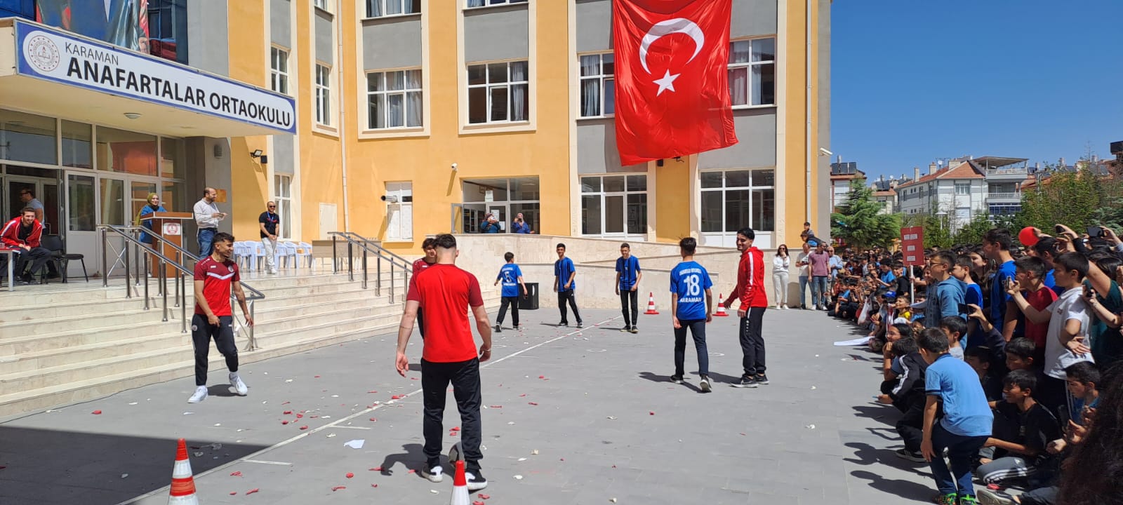 Programın en renkli anlarından biri ise futbolcuların öğrencilerle birlikte sahaya çıkarak gösteri maçı yapması oldu. Neşeli ve dostluk dolu karşılaşma, öğrenciler için unutulmaz anılarla dolu bir deneyime dönüştü.