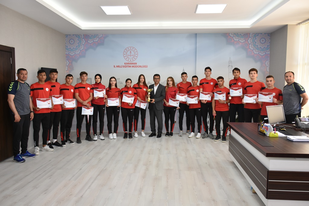 Türkiye şampiyonu olan takımı tebrik ederek konuşmasına başlayan İl Millî Eğitim Müdürü Mehmet Çalışkan, oturarak voleybol branşında Karaman’ın elde ettiği başarılar neticesinde bu alanda markalaştığını ifade etti. Mehmet Çalışkan, “Elde ettiğiniz dereceden dolayı sizleri canı gönülden tebrik ediyorum. Sizlerin başarısı bizleri gururlandırmaya ve mutlu etmeye devam ediyor. Son yıllarda özellikle spor branşlarındaki başarılarımız Karaman’ı marka haline getirdi. Bu başarıların hikâyesini sizler yazıyorsunuz. İnşallah elde ettiğiniz başarılar sizin için sadece bir başlangıç olur ve yeni başarı hikâyeleri yazmaya devam edersiniz. Sizlerin başarısında emeği geçen idareci ve öğretmelerinize teşekkür ediyor, başarılarınızın artarak devam etmesini diliyorum.” dedi.
