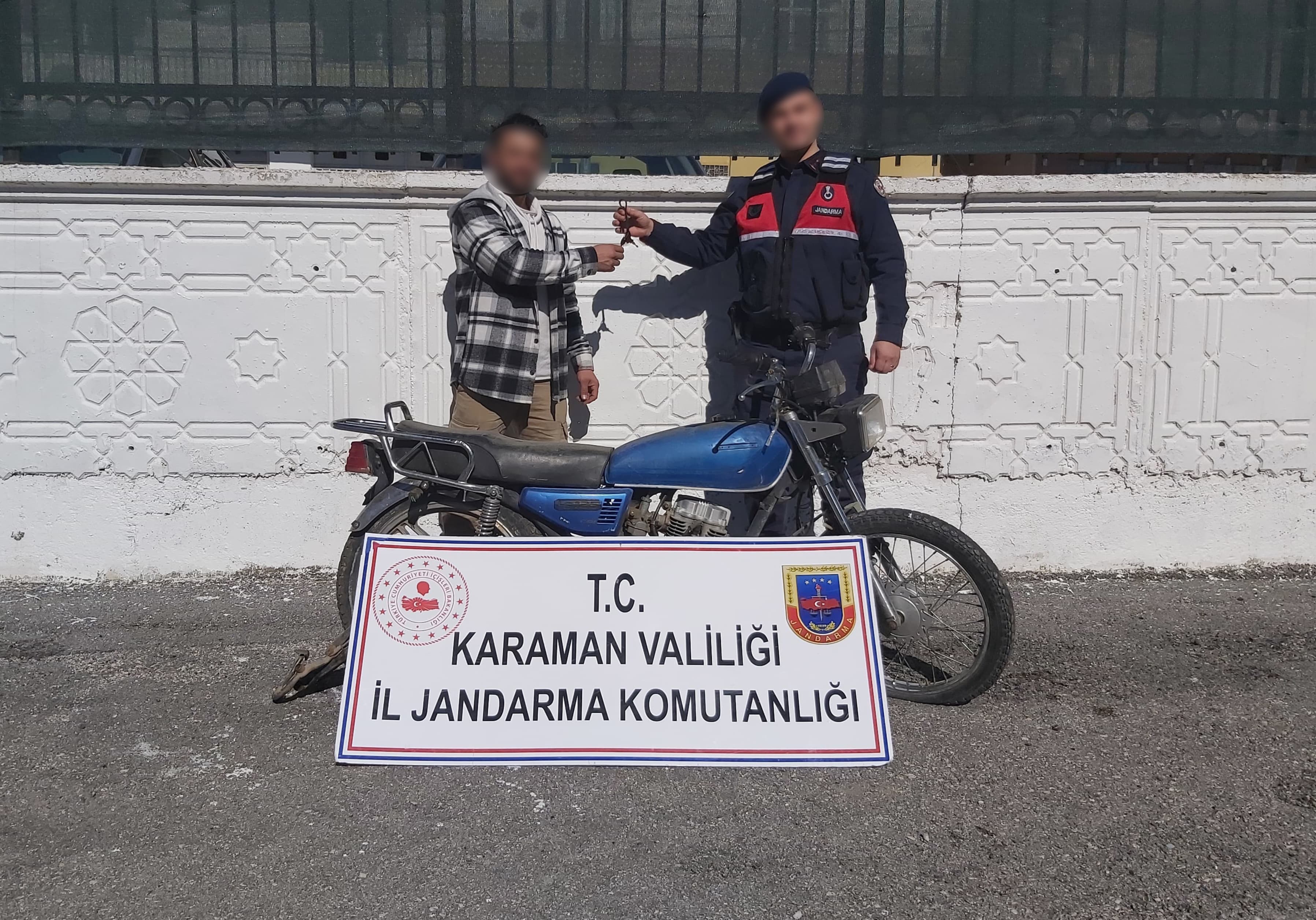 Motosiklet üzerinde yapılan incelemede; 01 Ağustos 2023 tarihinde Ermenek/Mut yolu üzerinde park halindeyken çalındığı ve (V.A) isimli şahsa ait olduğu tespit edilmiştir. Bulunan motosiklet 07 Şubat 2024 günü Güneyyurt Jandarma Karakol Komutanlığında sahibine teslim edilmiştir.