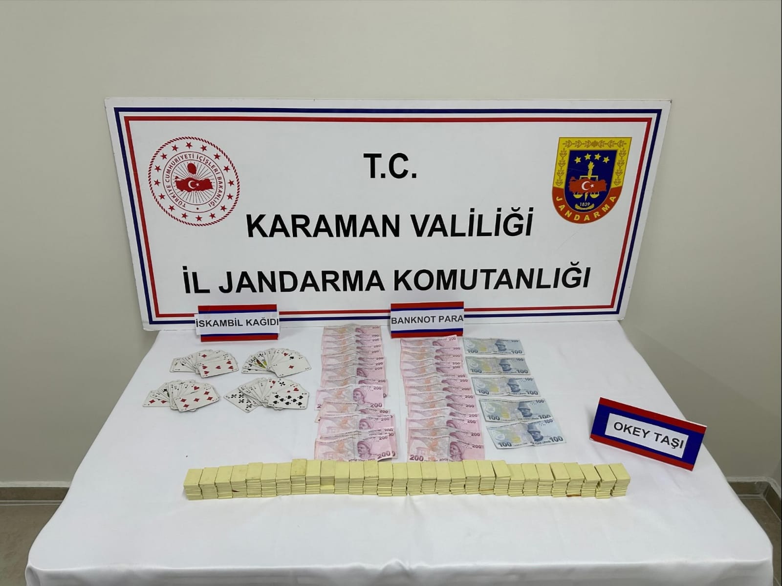 Denetimler esnasında; (52) adet Fosil, (6) adet Ruhsatsız Av Tüfeği, (1) adet Kurusıkı Tabanca, (1) adet Dedektör, (4) adet Metal Altın Arama Çubuğu, (3) adet Kama, (52) adet İskambil Kâğıdı, (279) adet Okey Taşı ve 6500 TL para ele geçirilmiştir.