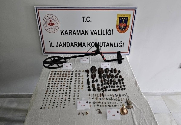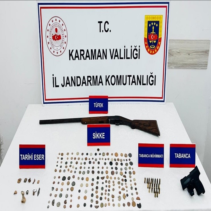 Denetimler esnasında; (1) adet ruhsatsız tabanca, (1) adet ruhsatsız av tüfeği, tabanca fişeği, (30) kg tütün, (22.800) adet boş makaron, (3.940) adet doldurulmuş makaron, (1) adet elektrikli makaron doldurma makinesi, (1) adet poşetleme makinesi, sentetik ecza hap, (1) adet dedektör, (203) adet sikke, (50) adet farklı boyutlarda ve ebatlarda obje, (163) adet bakır ve gümüşü renkli sikke, (12) adet yüzük ve kolye parçası, (118) adet göktaşı olduğu değerlendirilen çeşitli boy ve ebatlarda taş ele geçirildi.
