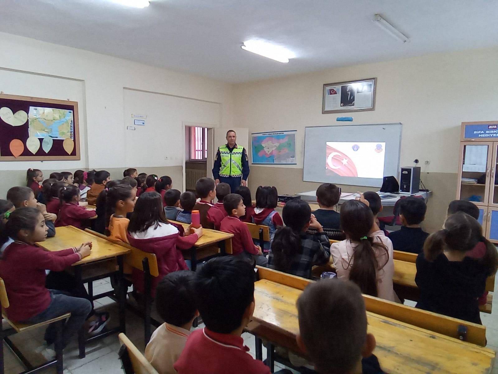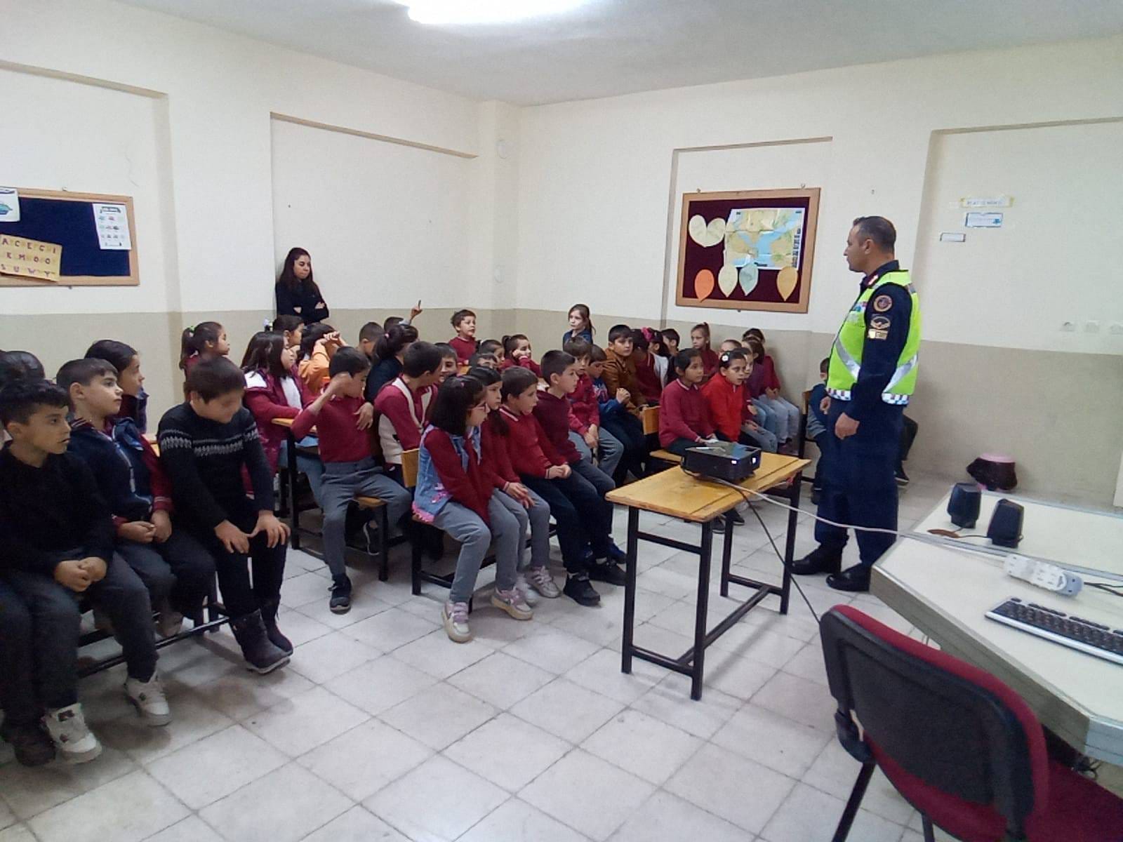 Karaman İl Jandarma Komutanlığı Jandarma Trafik Timleri tarafından İl Merkez Kızılyaka Köyü İlkokulunda öğrenim gören (72) öğrenciye 2023-2024 Eğitim-Öğretim Dönemi “Trafik Dedektifleri Projesi Eğitim Semineri” kapsamında; 08.12.2023 günü saat: 09:00 - 10:30 saatleri arasında, Trafik Kuralları, Trafik Işık ve İşaretleri, Emniyet Kemeri Kullanma (Uygulamalı), Geçit Türleri, Yayaların Uyması Gereken Kurallar, Güvenli Seyahat konularında Trafik Eğitim Seminerleri verilerek öğrencilerin trafik konularına yönelik soruları cevaplandırıldı.