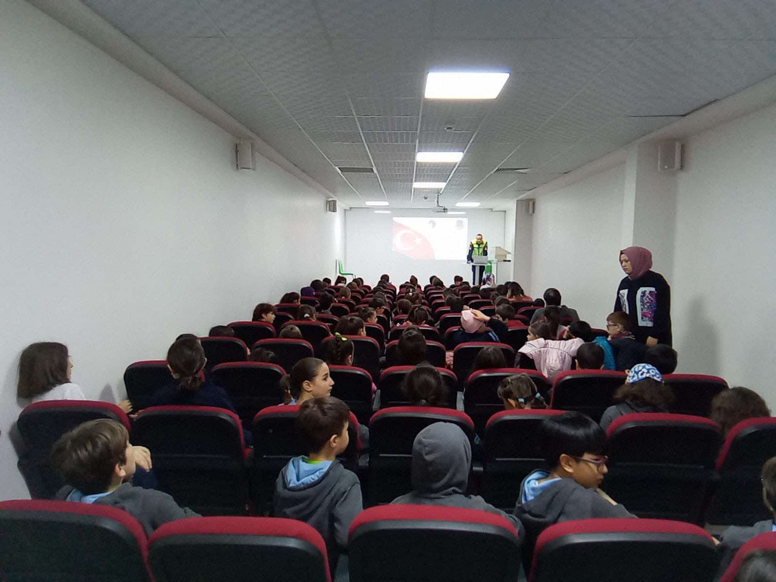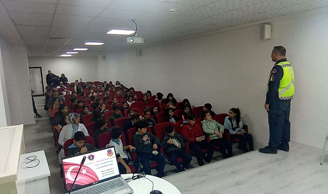 Trafik bilincinin oluşturulması maksadıyla seminer sonunda öğrencilerin trafik konularına yönelik soruları cevaplandırıldı.