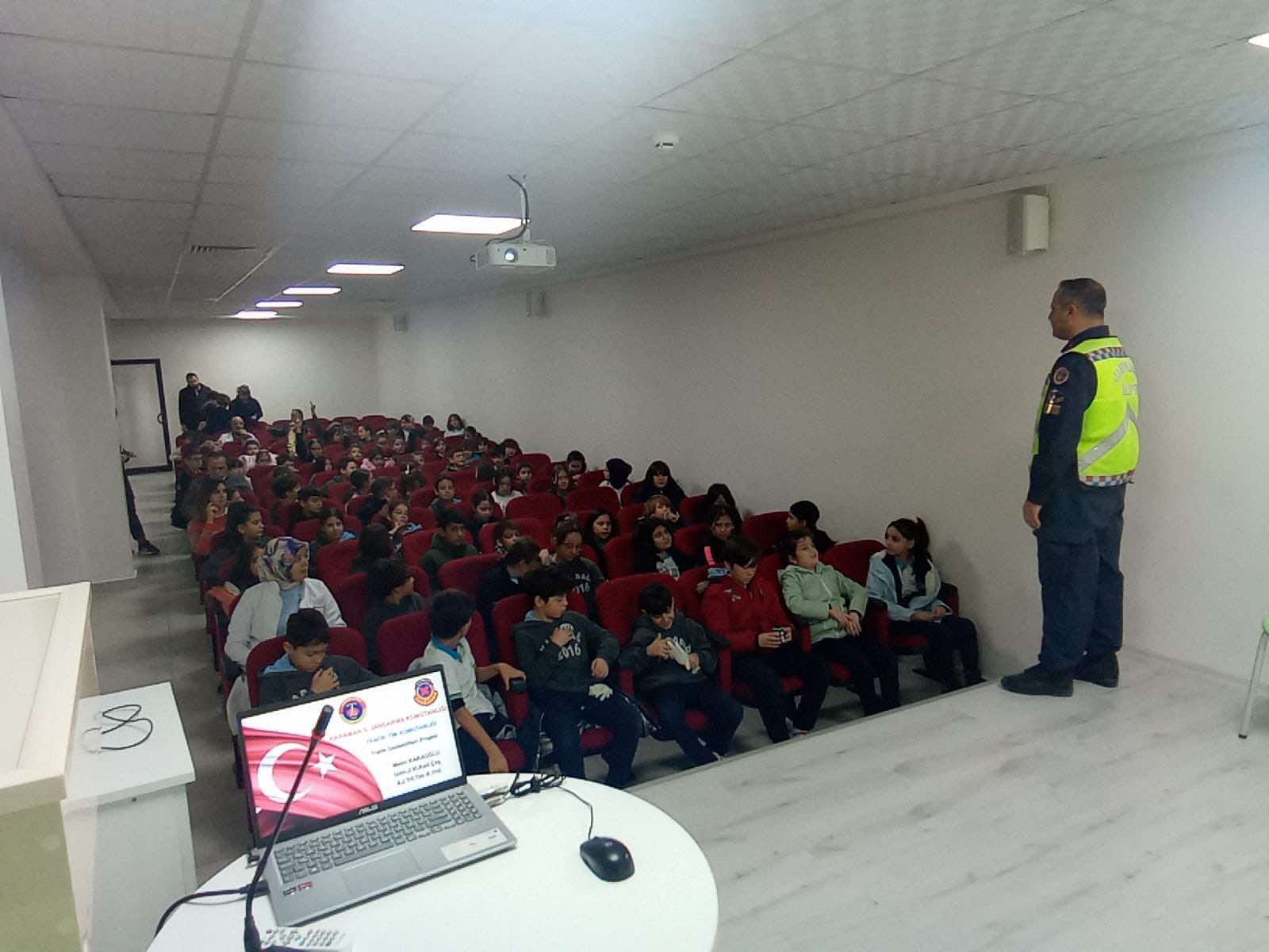 Karaman İl Jandarma Komutanlığı Jandarma Trafik Timleri tarafından İl Merkez Özel Karadağ Okullarında öğrenim gören (607) öğrenciye 2023-2024 Eğitim-Öğretim Dönemi “Trafik Dedektifleri Projesi Eğitim Semineri” kapsamında; 10.01.2024 günü saat: 09:00 – 12.00 saatleri arasında, “Trafik Kuralları, Trafik Işık ve İşaretleri, Emniyet Kemeri Kullanma (Uygulamalı), Geçit Türleri, Yayaların Uyması Gereken Kurallar, Güvenli Seyahat” konularında Trafik Eğitimi verildi.