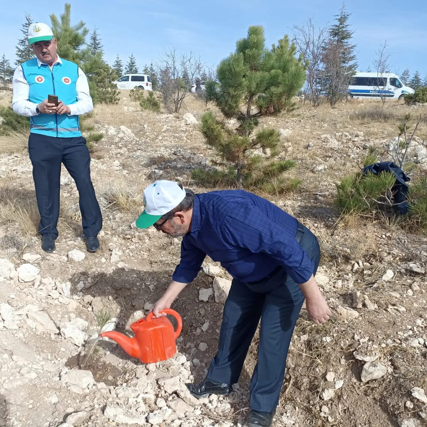 Karaman İl Müftülüğü personeli ve Türkiye Diyanet Vakfı gönüllüleri “11 Kasım Milli Ağaçlandırma Günü”ne Destek Oldu“11 Kasım Milli Ağaçlandırma Günü” münasebetiyle 11 Kasım 2023 Cumartesi günü saat 11:00' de 81 il ve 922 ilçede aynı anda Cumhurbaşkanımız Sayın Recep Tayyip ERDOĞAN tarafından verilen başlangıçla ülke genelinde milyonlarca fidan toprakla buluştu.Karaman’da da Hakkı Teke Ormanı Atış Poligonu Mevkii bölgesinde gerçekleştirilen fidan dikimi etkinliğinde 5 bin fidan ve tohum toprakla buluşturuldu.Fidan dikimi etkinliğine Karaman Valisi Hüseyin Engin SARIİBRAHİM, Belediye Başkanı Savaş KALAYCI, İl Müftüsü Faruk GÜRBÜZ, diğer resmi kurumlar, TEMA gönüllüleri, sivil toplum kuruluşu temsilcileri, üniversite öğrencileri ve vatandaşlar katıldı.Programa İl Müftüsü Faruk GÜRBÜZ, müftülük görevlileri ve üniversite öğrencileri de katılarak fidan dikimine destek verdi. Müftü Gürbüz de diktiği fidana can suyu verdi.