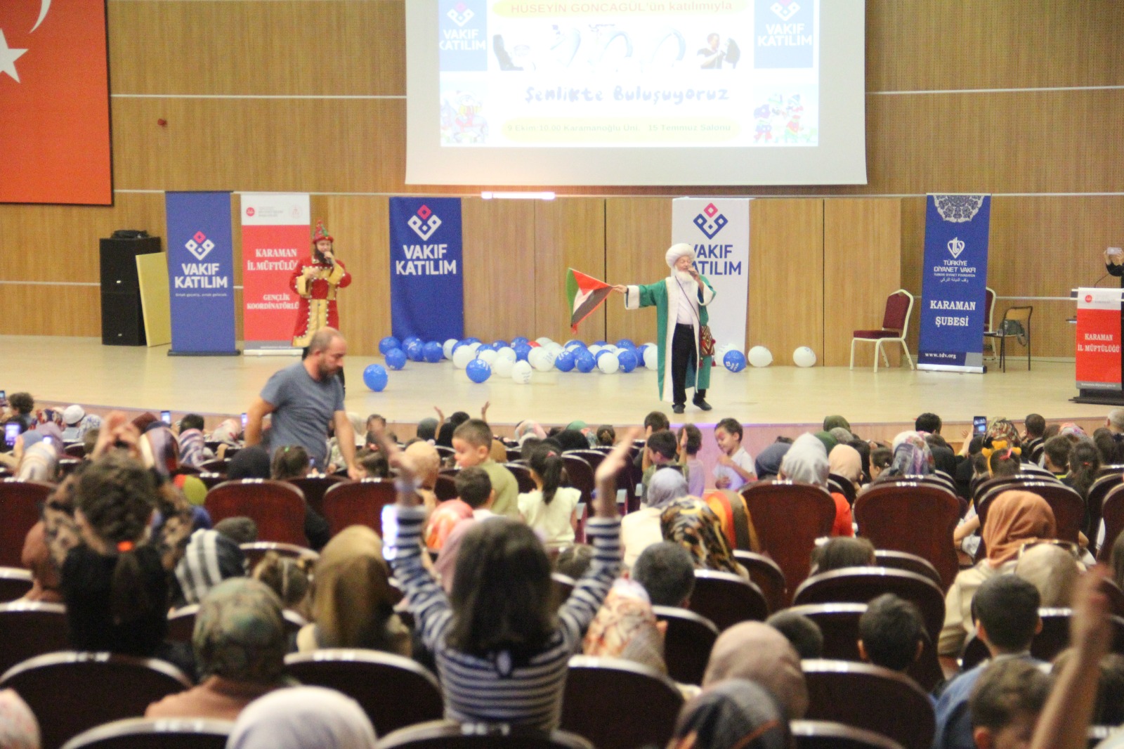 Karaman İl Müftülüğünden Çocuk Şenliği ProgramıKaraman İl Müftülüğü Tarafından "100. Yılda Çocuklarımızla 100 Şenlikte Buluşuyoruz" programında çeşitli etkinlikler gerçekleştirildi.Karaman İl Müftülüğüne bağlı 4-6 ve 7-10 yaş grubu, hafızlık eğitimlerinin yapıldığı kurslarda eğitim alan çocukların merakını gidermesi, velileri ile nitelikli zaman geçirmesi, bu sayede kadim kültürümüzde var olan oyunların ve mizah karakterlerinin gelecek kuşaklara tanıtılarak kültürel unsurların ve değerlerin aktarımına destek olunmak üzere Diyanet İşleri Başkanlığının kuruluşunun 100. yılında ‘100. Yılda Çocuklarımızla 100 Şenlikte Buluşuyoruz’ programı münasebetiyle Vakıf Katılım'ın sponsorluğunda çocuk şenliği düzenlendi.09.10.2024 Çarşamba günü 15 Temmuz Konferans Salonunda Hafız İmam Hatip Ortaokulu Kur'an Kursu Öğrencisi Remzi Eymen FOTO'nun Kur’an –ı Kerim tilavetiyle başlayan programa, Vali Yardımcısı Osman Demir, İl Müftüsü Faruk Gürbüz, kurum müdürleri, müftülük personeli, Karaman Merkez ve ilçelerden Hafızlık ve 4-6 yaş grubu Kuran Kursu Öğreticileri, öğrencileri ve veliler katıldı.Karaman İl Müftülüğüne bağlı Kur’an Kurslarında eğitim gören öğrencilere Kur’an-ı Kerim ve Temel Dini Bilgiler eğitiminin yanı sıra milli ve manevi değerlerimizi öğrencilere kavratmak amacıyla TRT Çocuk programcısı ve tiyatro sanatçısı Hüseyin Goncagül ve Ekibi tarafından Hacivat-Karagöz, Nasrettin Hoca, Çocuk İlahileri, Kukla vb. gösterilerden oluşan "100. Yılda Çocuklarımızla 100 Şenlikte Buluşuyoruz" programında çeşitli etkinlikler gerçekleştirildi.Velilerin ve öğrencilerin büyük ilgi gösterdiği programda konuşan İl Müftüsü Faruk Gürbüz; "Karaman Müftülüğü olarak güzel bir programda bir araya geldik. Filistin’de çocukların öldürüldüğü bir dönemde yaşıyoruz. Oysa çocuklar öldürülmeye değil güldürülmeye layıktır. Çocukların sevinci ve mutluluğu için hepimiz mücadele etmeliyiz."dedi. Konuşmasının sonunda Gürbüz, programın düzenlenmesinde emeği geçen görevlilerimize, katılım sağlayan velilerimize, öğrencilerimize ve bu etkinlikte güzel sunumlarıyla çocuklarımızı neşelendiren Tiyatro Sanatçısı Hüseyin Goncagül ve ekibine teşekkür etti.Etkinlik sonunda kâğıt helva ve pamuk şeker gibi ikramlar ile misafirlerin ve çocukların sevinci tazelendi. İkramları alan öğrencilerimizin mutluluğu görmeye değerdi.