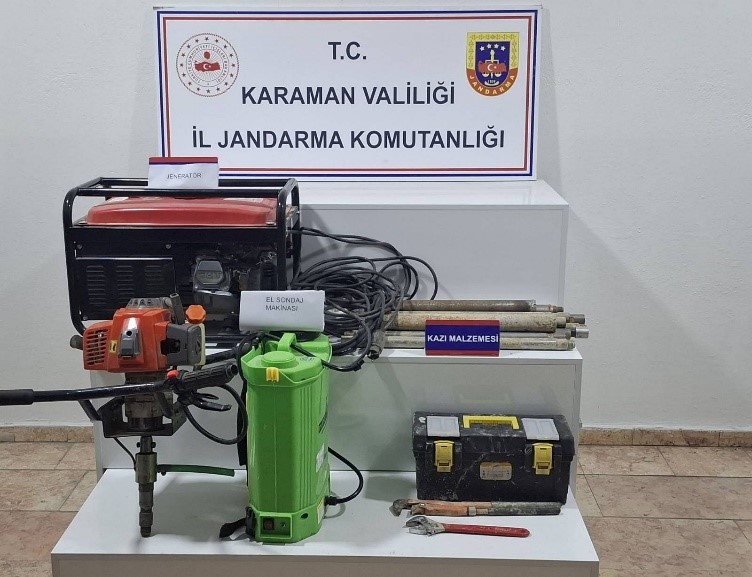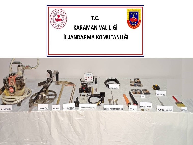 Denetimler sırasında ayrıca; kubar esrar, 16 adet sentetik ecza hap, 1 adet yivli tüfek ve dürbün, 40 adet 7.62 mm çapında fişek, 1 adet ruhsatsız tabanca ve şarjörü, 5 adet elektronik makaron doldurma makinesi, 1 adet manuel makaron makinesi, 2 adet hava kompresörü, 9.160 adet dolu makaron, 26.000 adet boş makaron, 55 kilogram tütün, 919 paket sigara, madeni ve kâğıt para, 5 adet dedektör, 2 adet jeneratör, 1 adet sondaj makinesi, su motoru, alan tarama cihazı, hilti ve çeşitli kazı malzemeleri ele geçirildi.