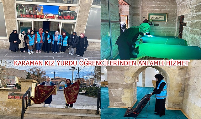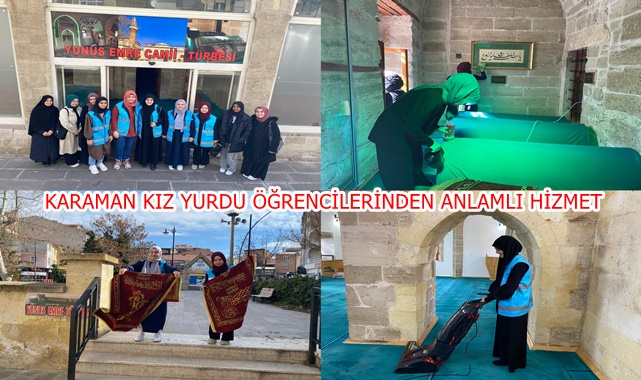 Karaman Kız Yurdu’nda barınan öğrenciler, Manevi Danışman Gülsüm Coşkun eşliğinde Yunus Emre Camii ve Türbesi’nin temizliğini gerçekleştirerek anlamlı bir sosyal sorumluluk çalışmasına imza attı.